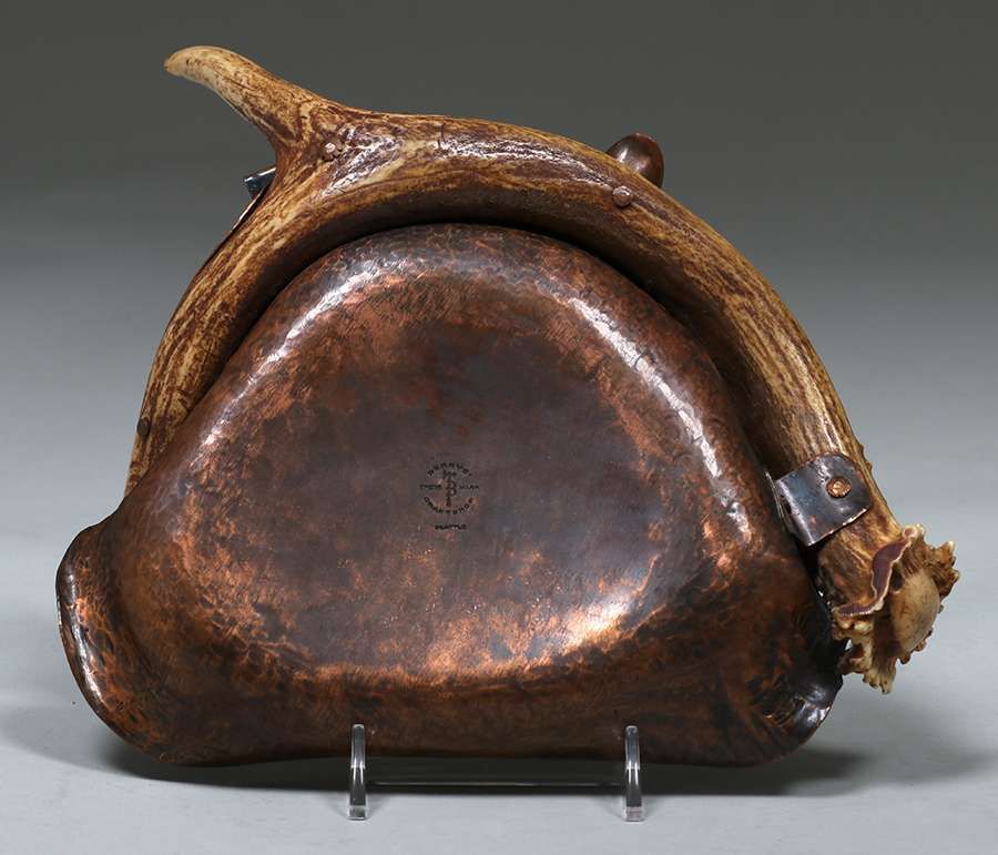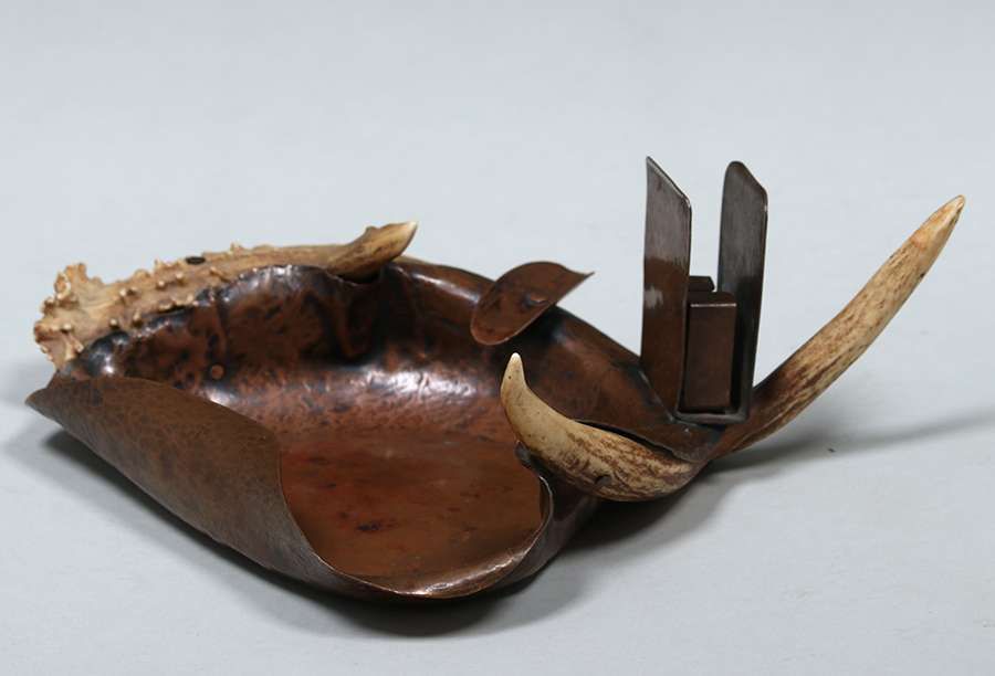 - Albert Berry Hammered Copper Antler Cigar Ashtray c1920s