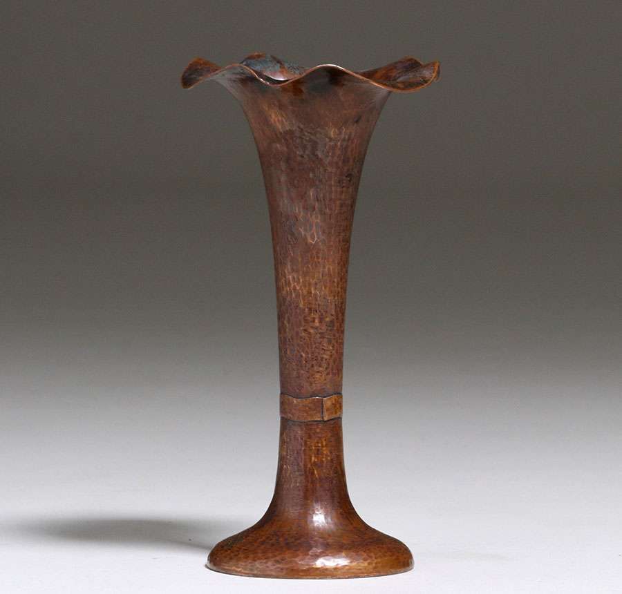 - Albert Berry Hammered Copper Flared Stem Vase c1920s