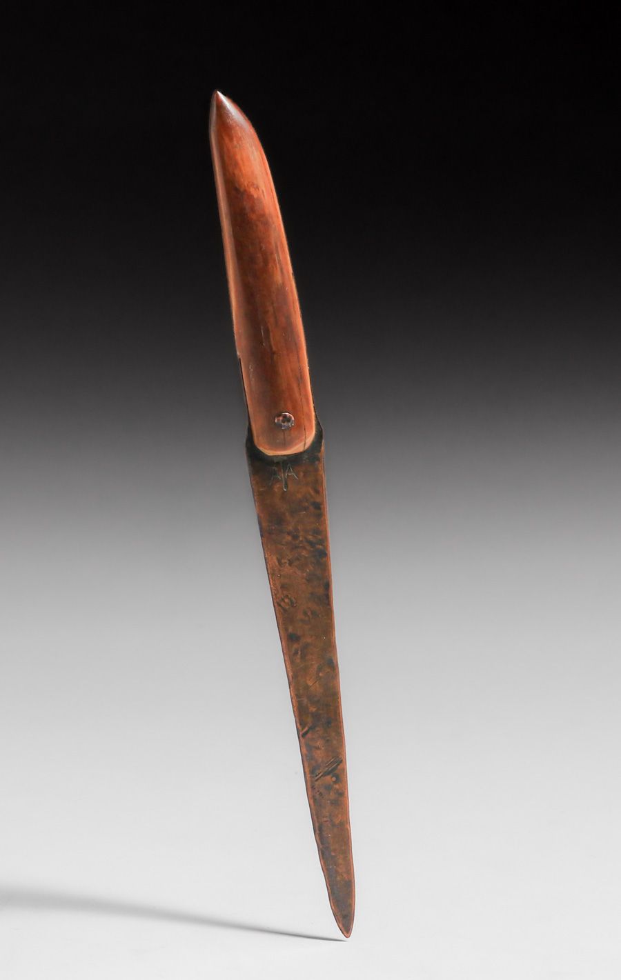 Albert Berry – Juneau, Alaska Hammered Copper Paper Knife c1910. Signed with the “AA” Alaska Artisans mark. Excellent original patina. 8.5” long SOLD