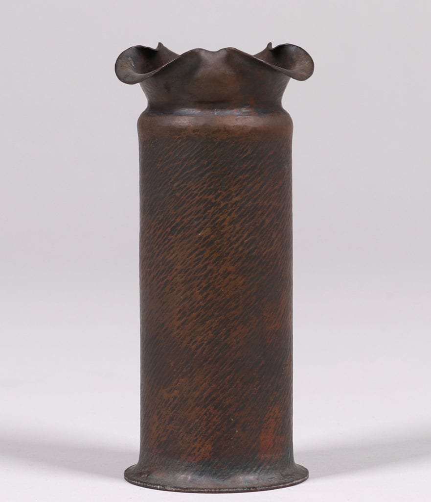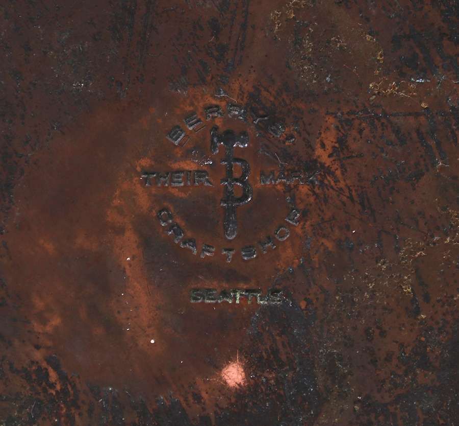 Albert Berry – Seattle – hammered copper cylinder vase with flared ruffled rim. Signed. Excellent original patina. 8.75″h x 4″d SOLD