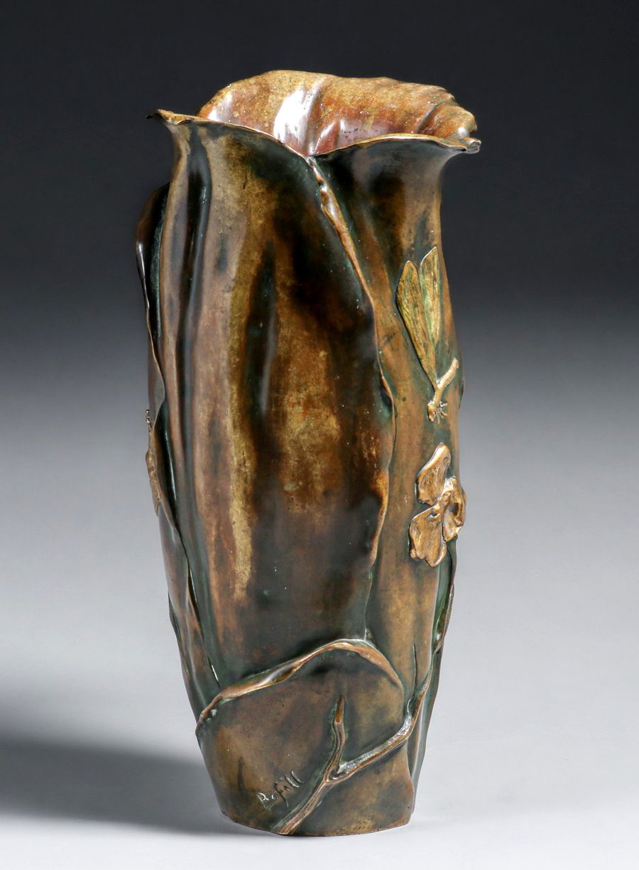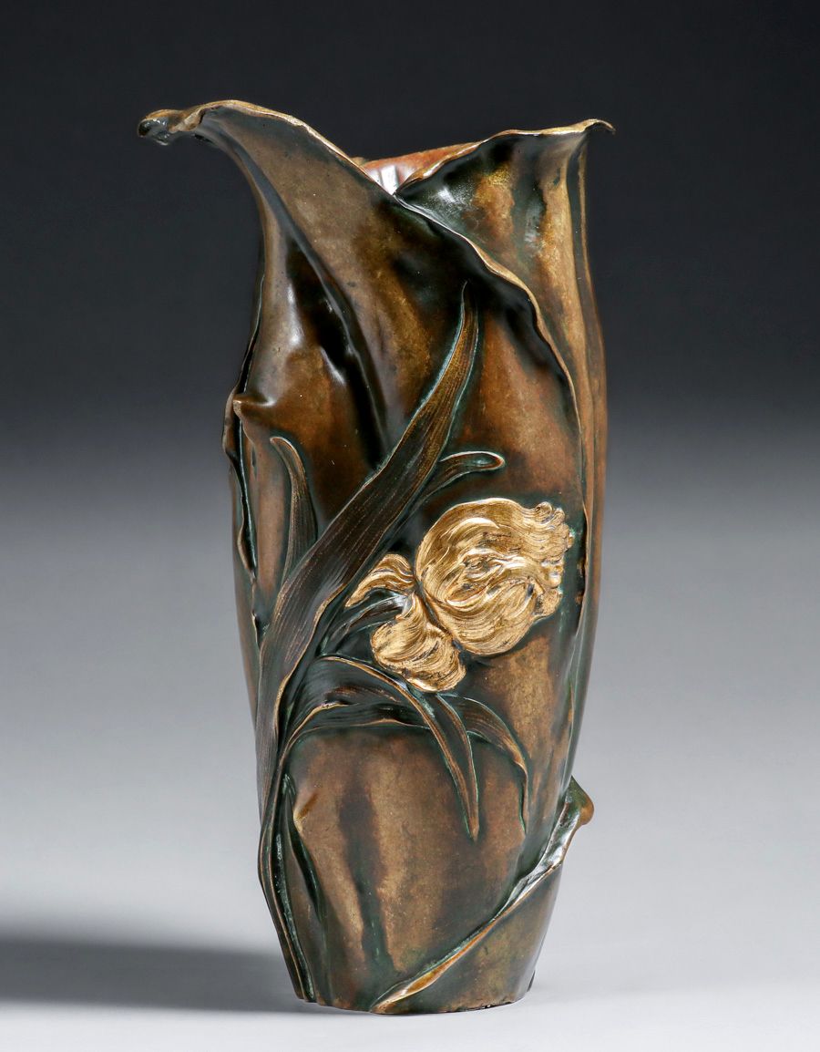 - Antoine Bofill Bronze Art Nouveau Mixed Metal Vase c1905