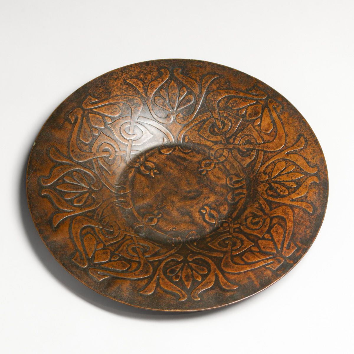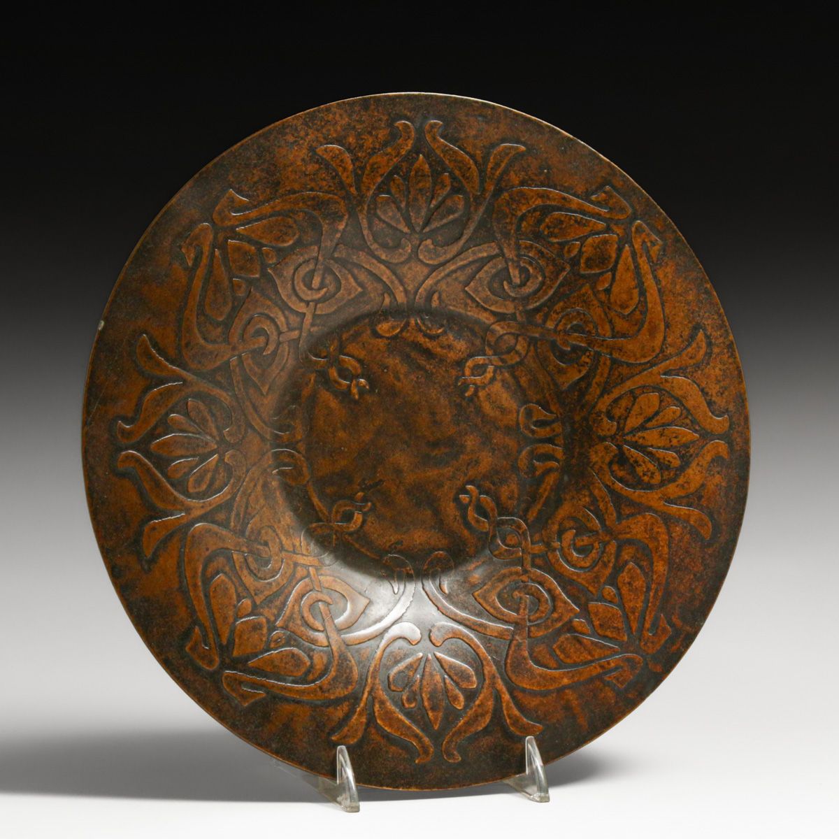 Art Crafts Shop - Buffalo Acid-Etched Tray c1905. Signed. Excellent new patina. 9.25"d