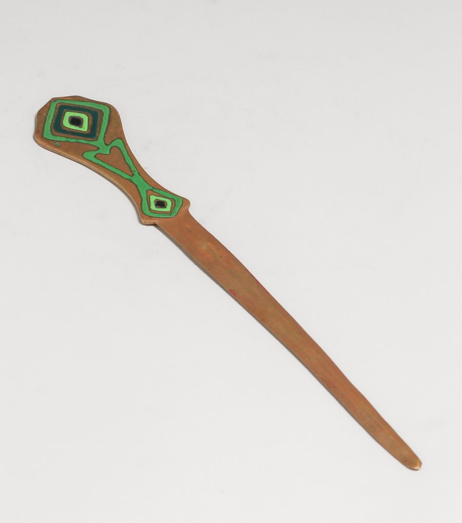 Art Crafts Shop - Buffalo, NY Bronze & Enamel Letter Opener c1905. Unsigned. Excellent original patina. 12" x 1 .75"w SOLD