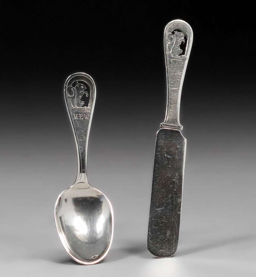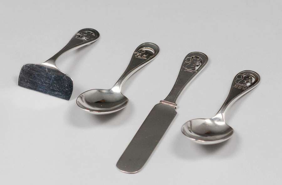 - Set of 4 Arthur Stone Sterling Silver Baby Serving Set c1910s