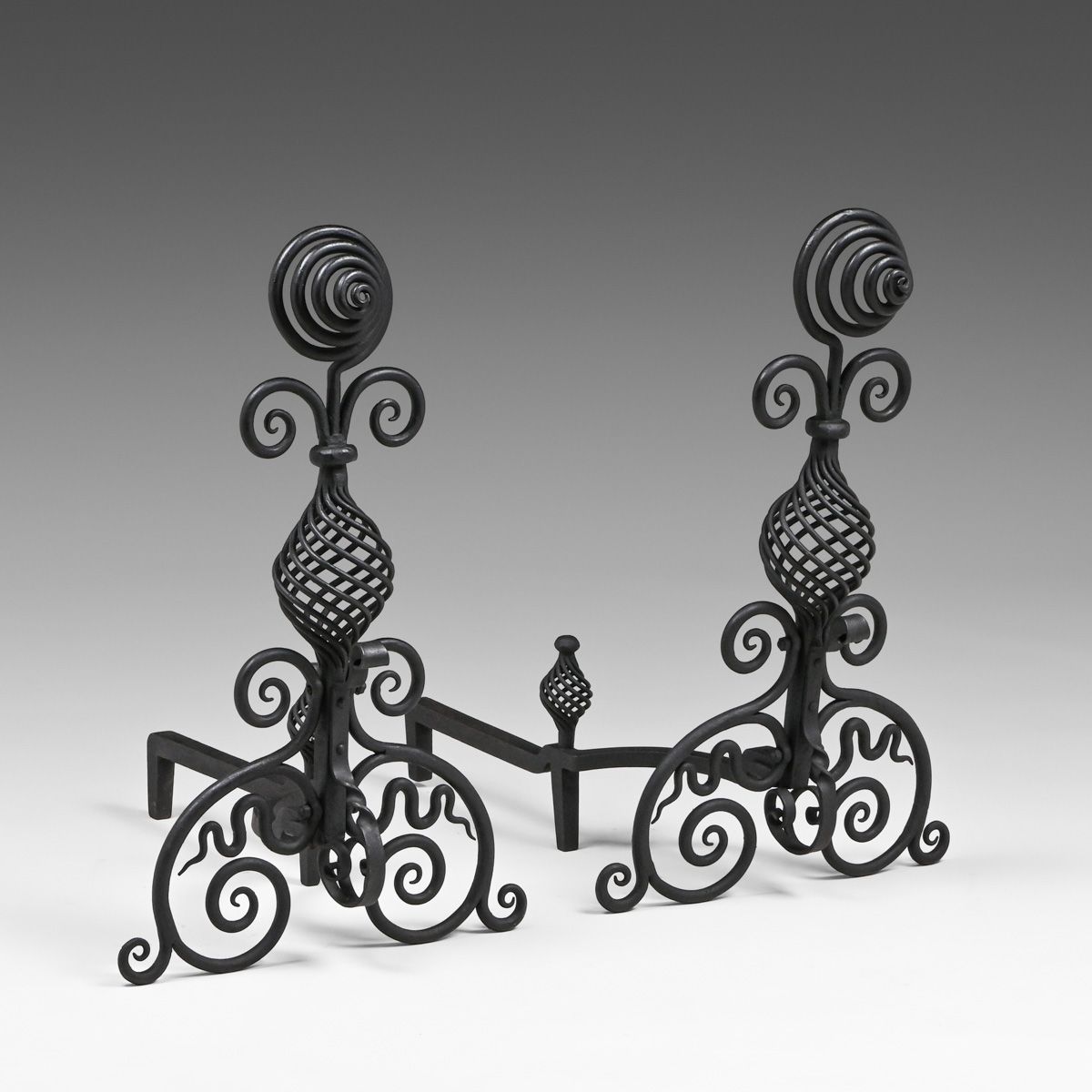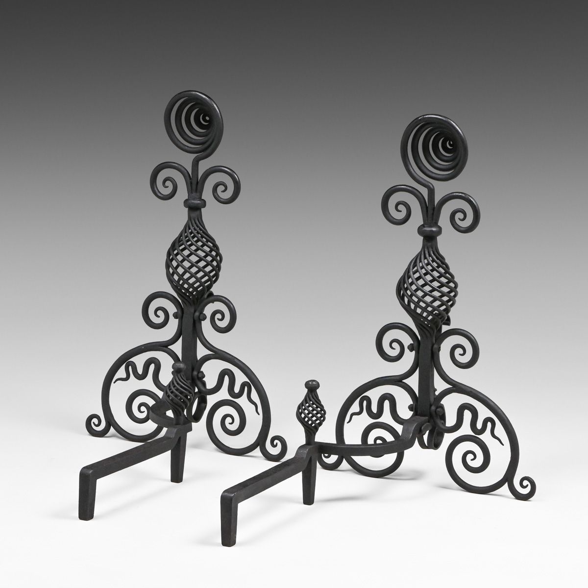 - Antique Arts & Crafts Period Hand-Wrought Iron Andirons Similar to Roycroft c1905