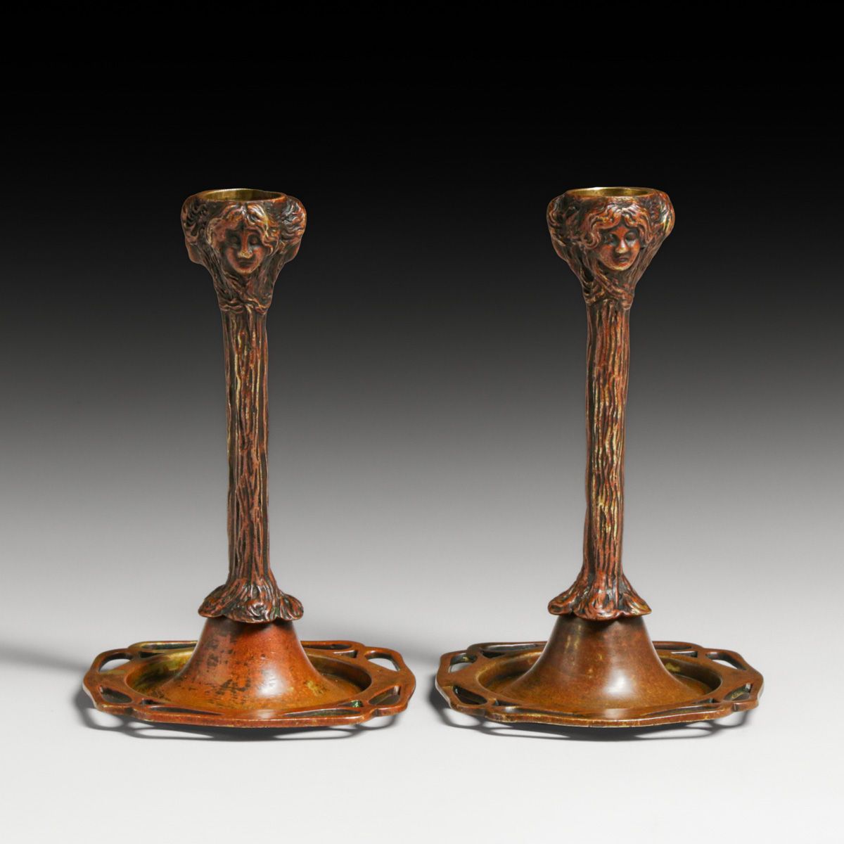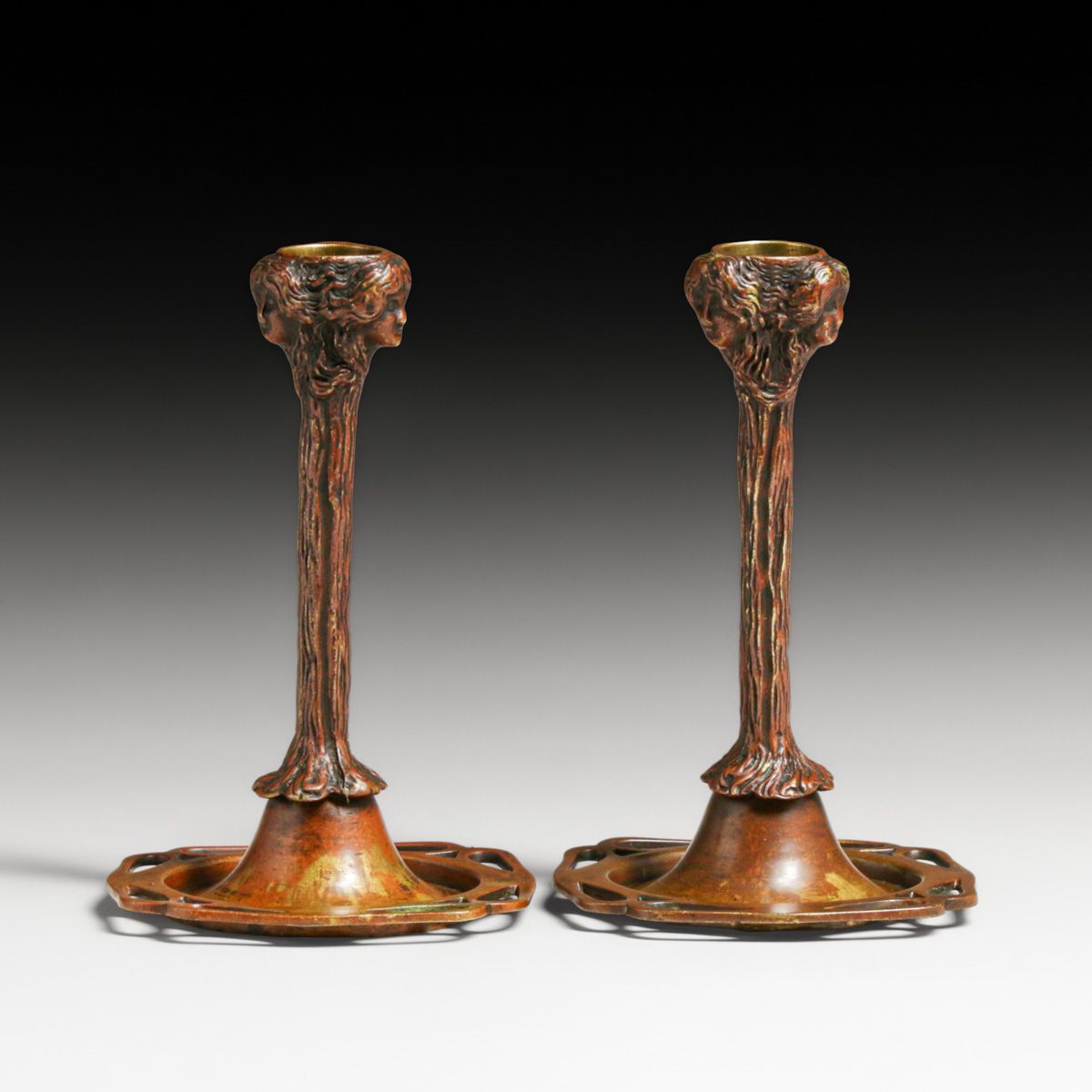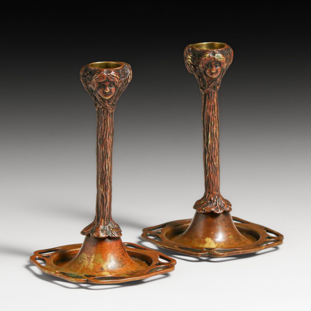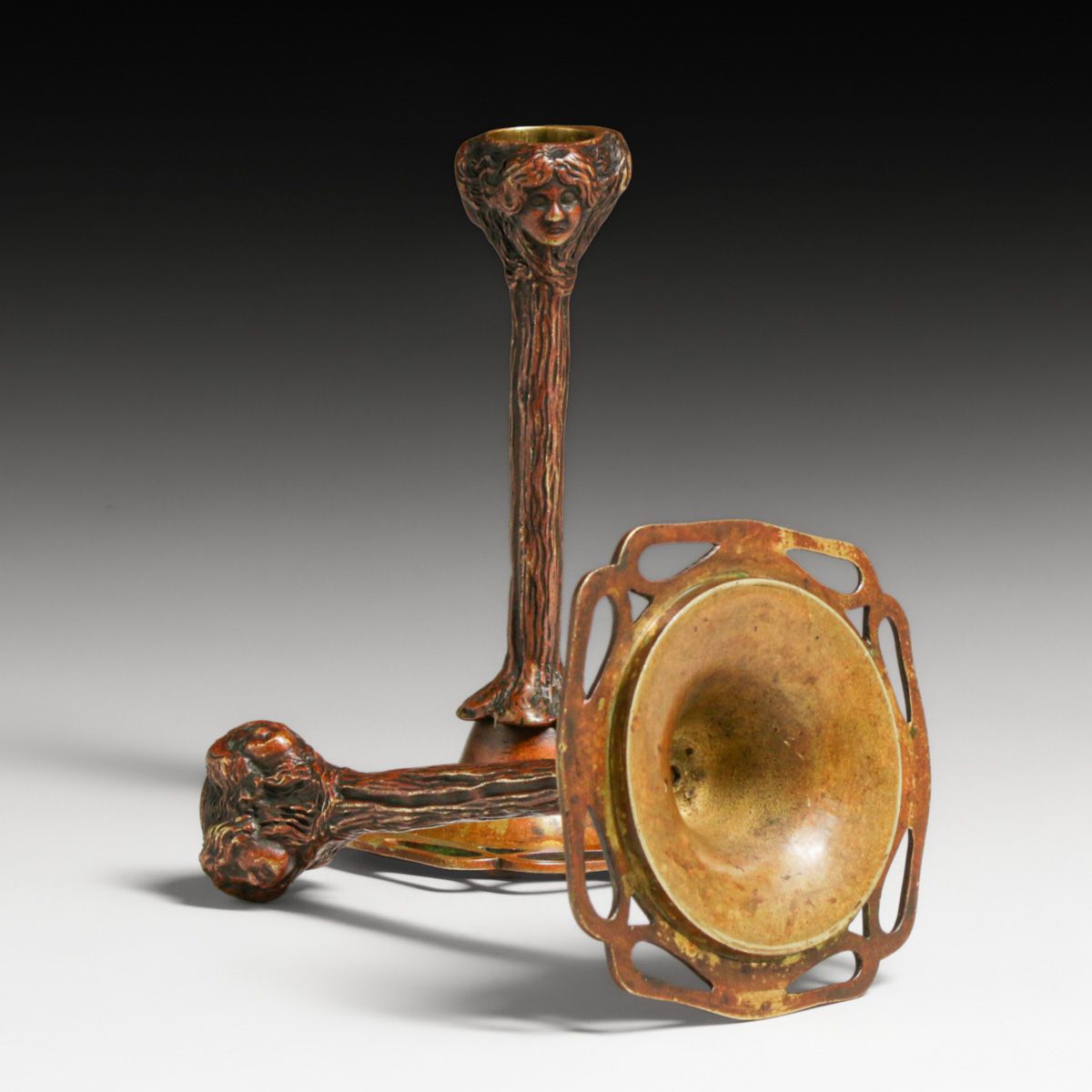 - Art Nouveau Bronze Water Nymph Candlesticks c1900s
