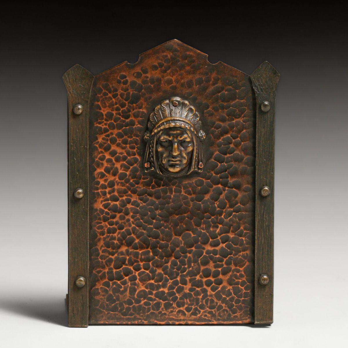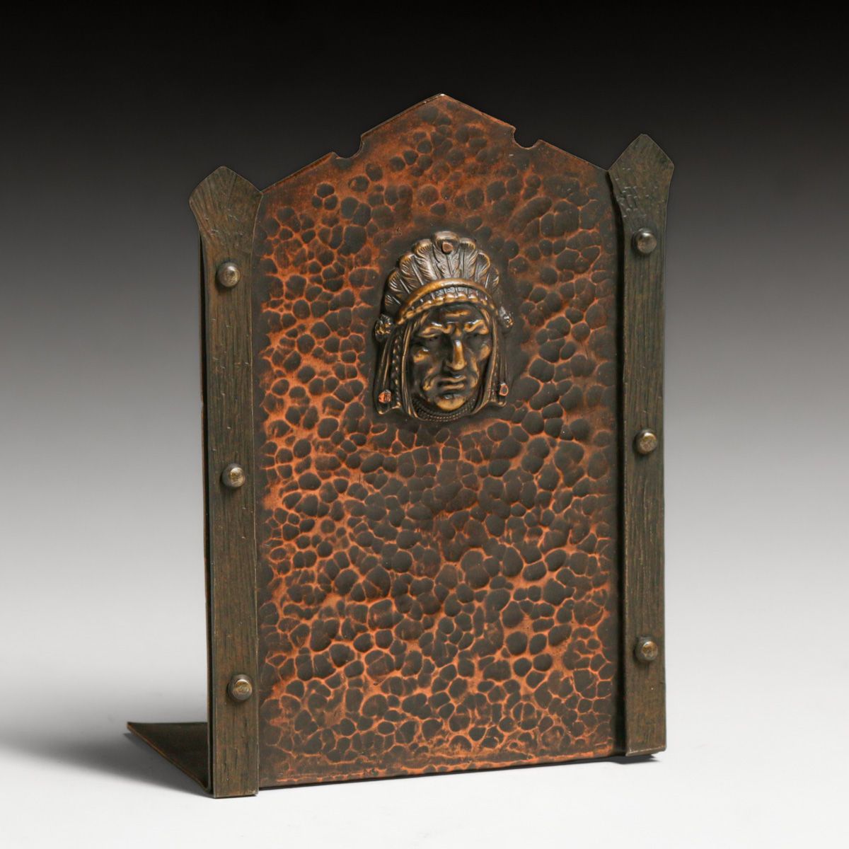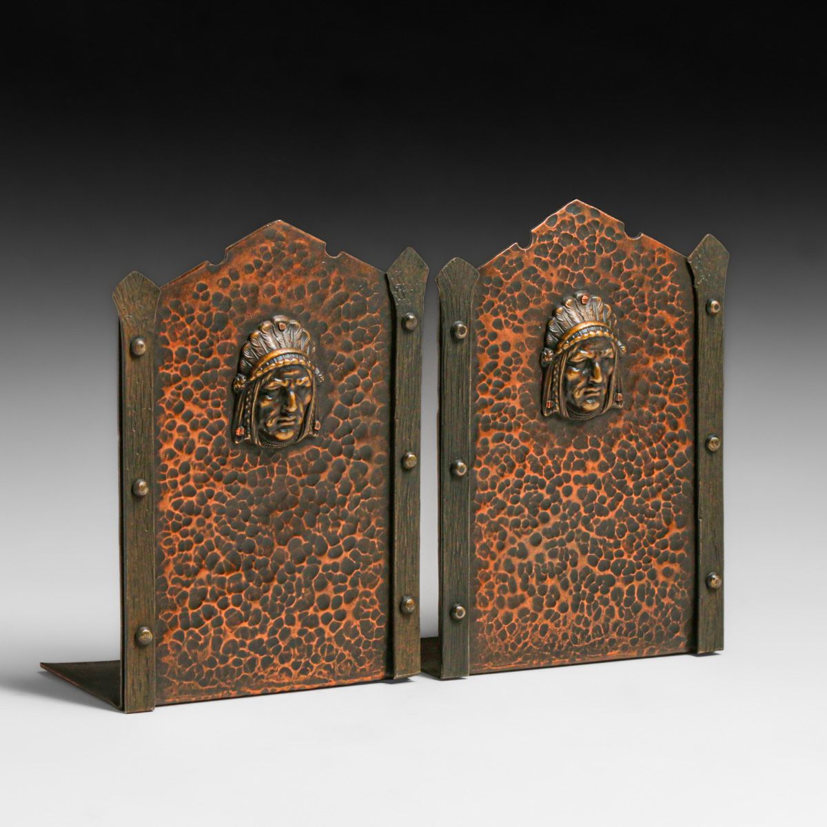 - Arts & Crafts Hammered Copper Native American Bookends c1910