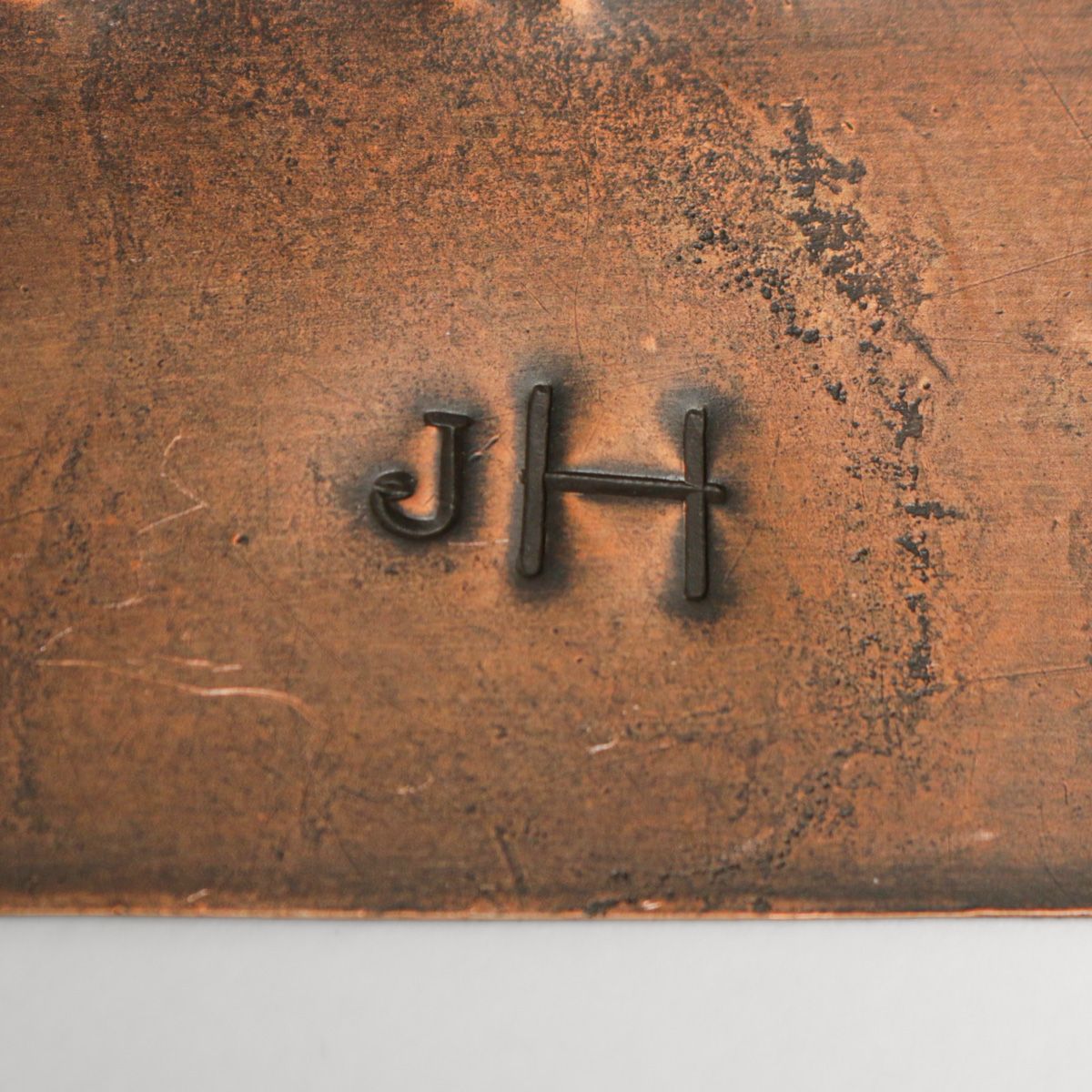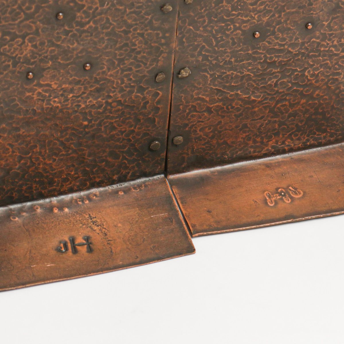 Arts & Crafts Hammered Copper Native American Bookends c1910. Signed "J.H." Excellent new patina. 5.75"h x 4.25"w