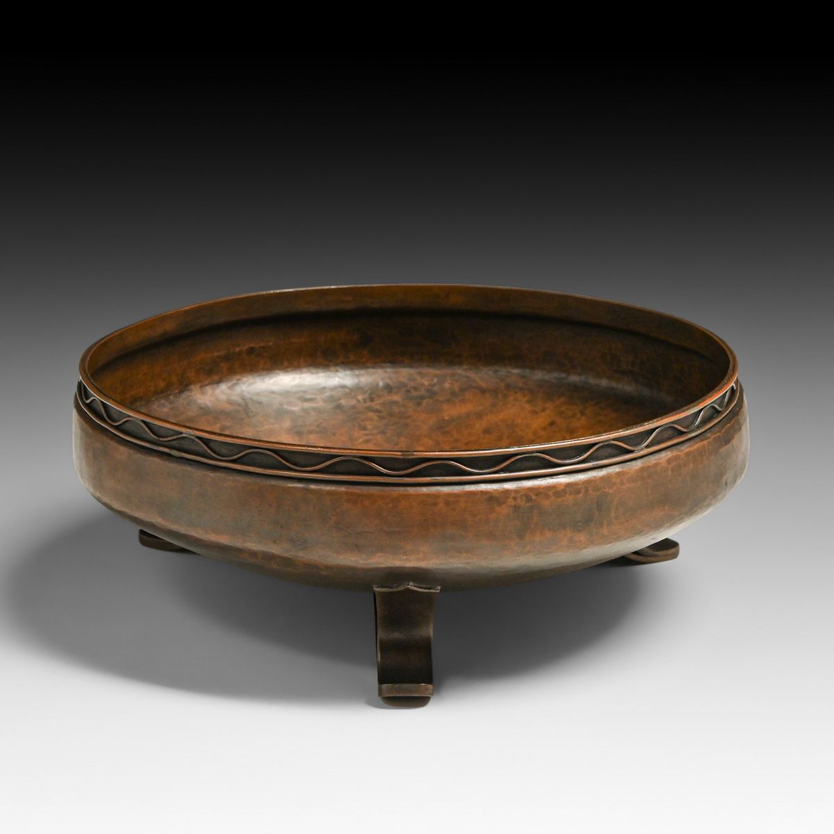 - Arts & Crafts Hammered Copper Three-Footed Bowl c1920s