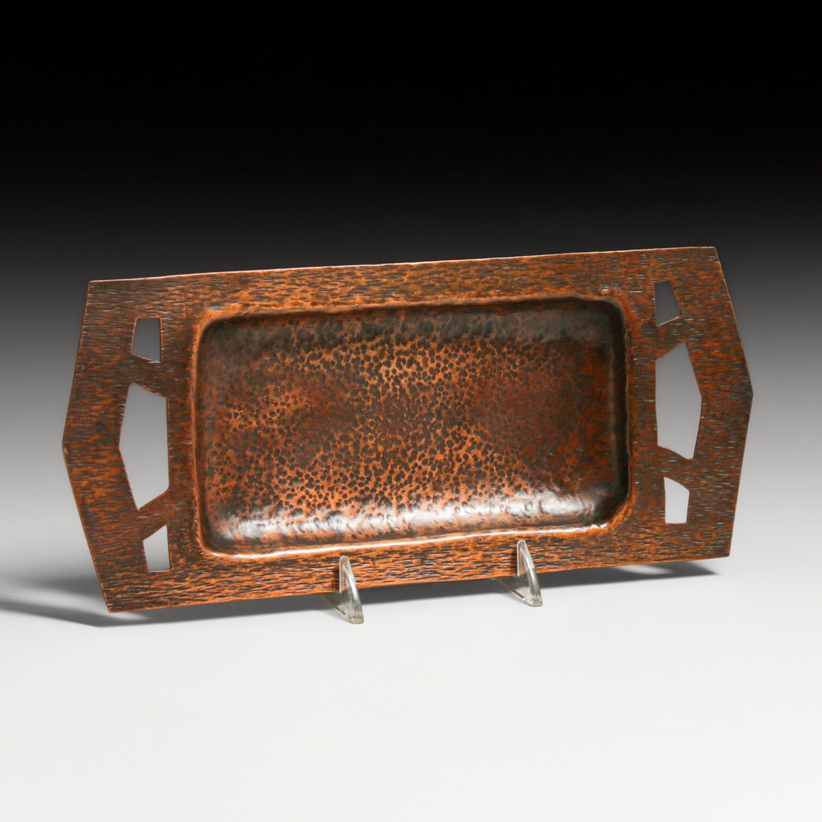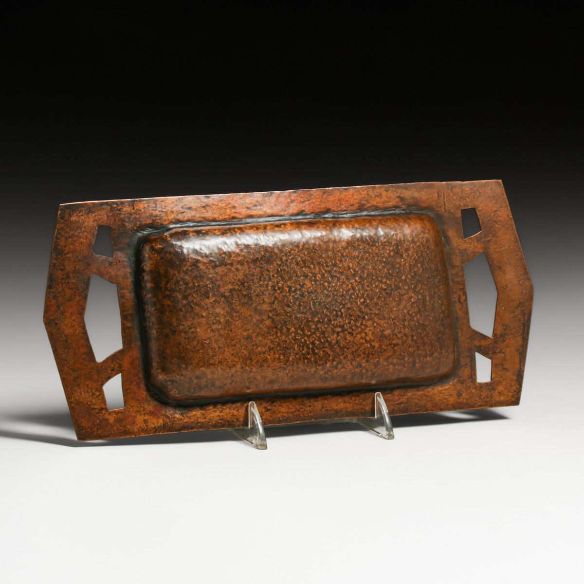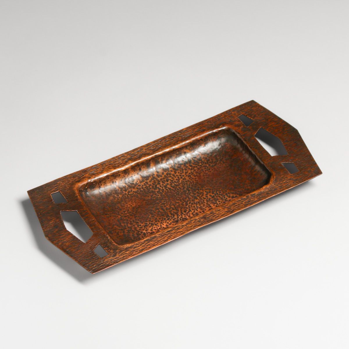 - Arts & Crafts Period Hammered Copper Cutout Pen Tray c1910