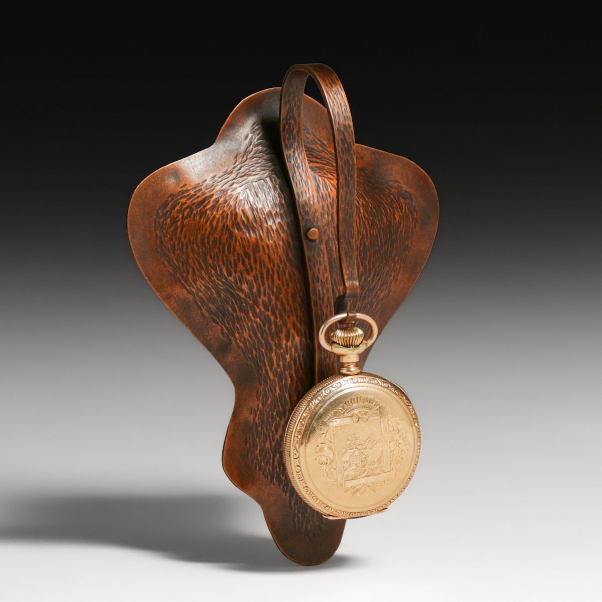 - Arts & Crafts Period Hammered Copper Hanging Pocket Watch Holder c1910s