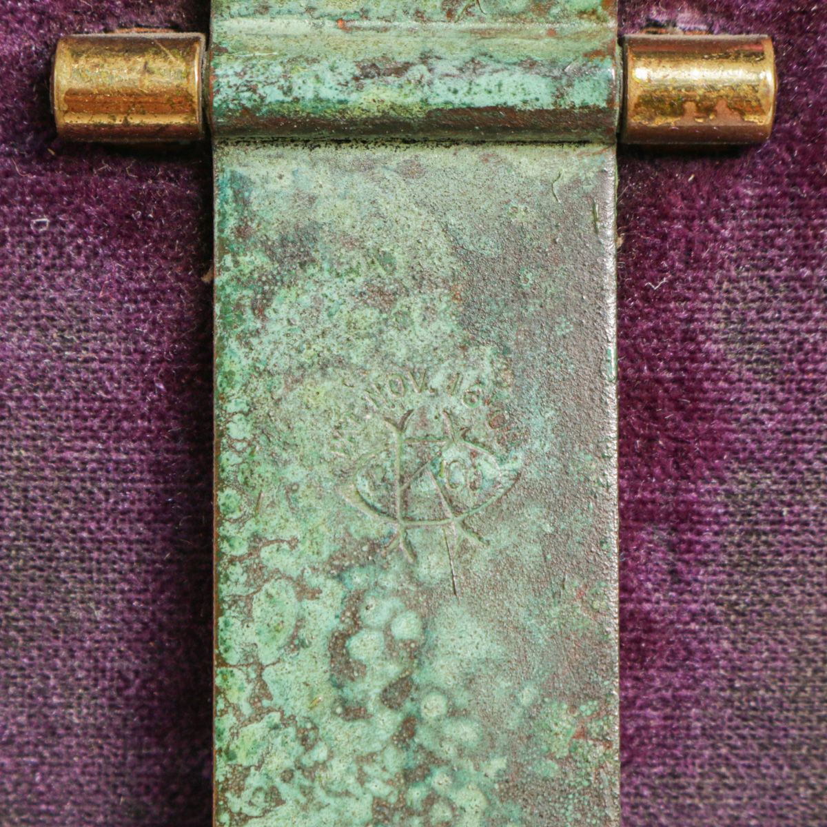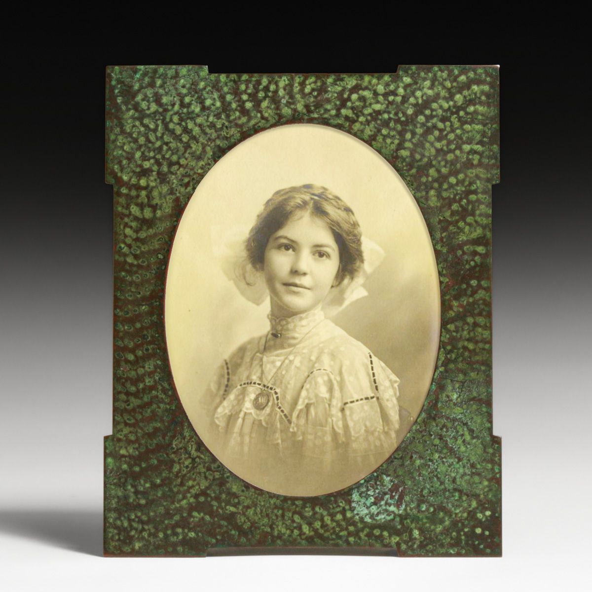 Arts & Crafts Period Hammered Copper Picture Frame c1910. Signed. Excellent original green patina. 6.75”h x 5.5”w