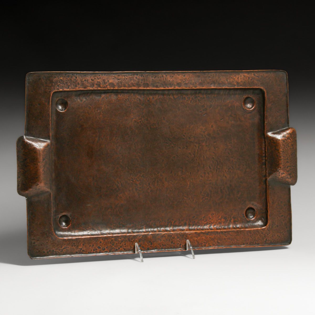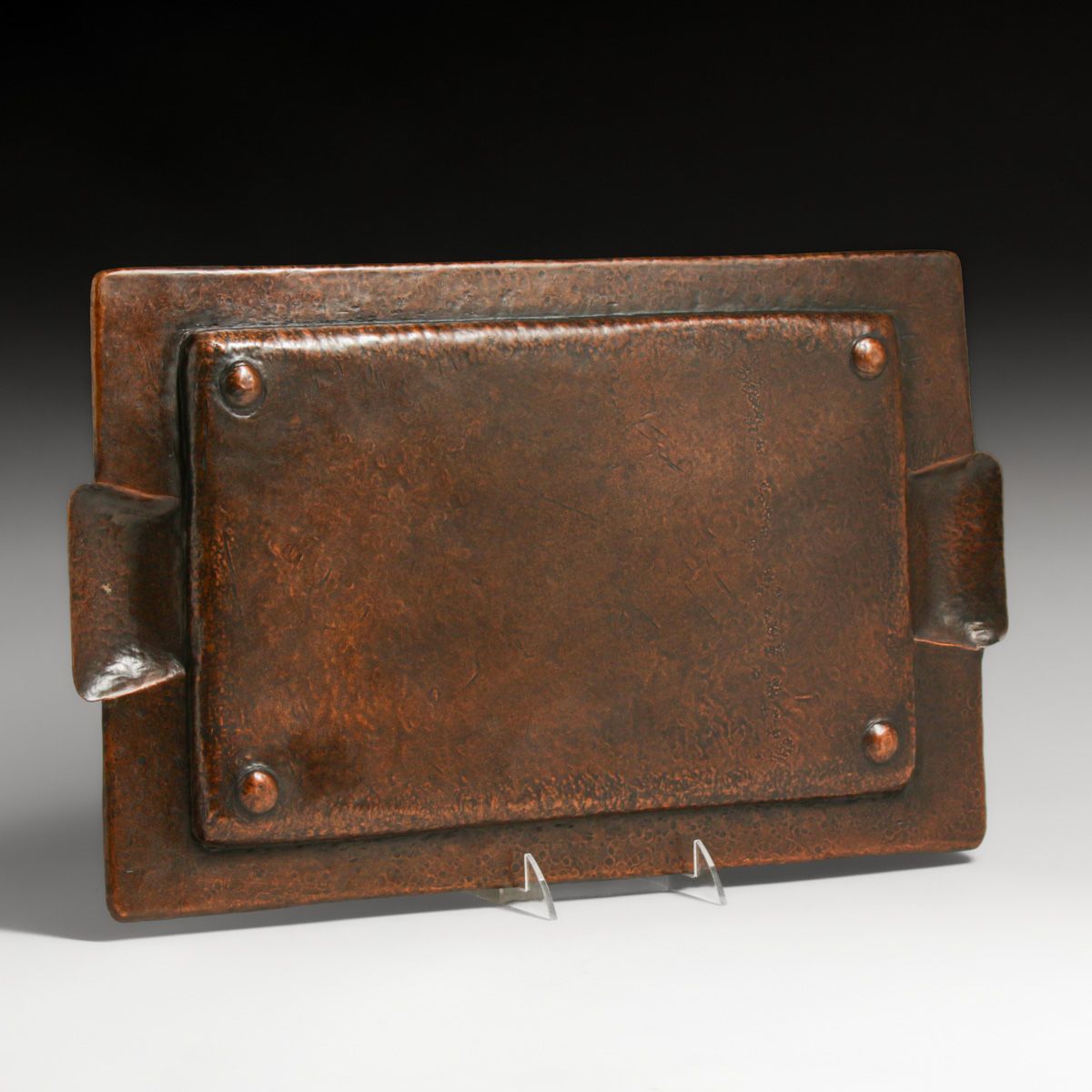 - Arts & Crafts Period Hammered Copper Two-Handled Serving Tray c1910