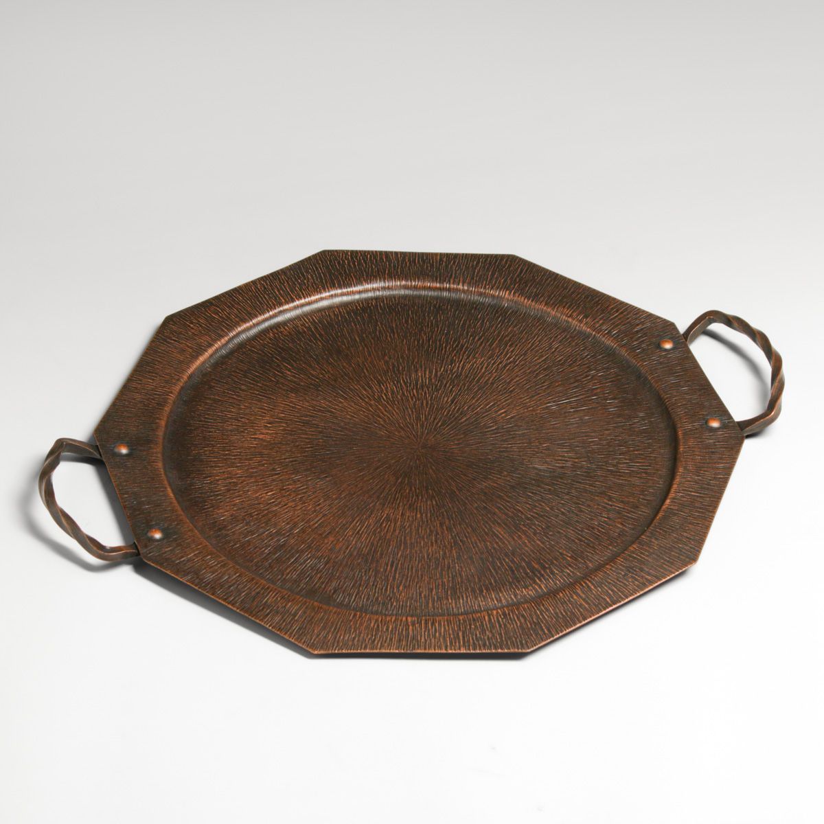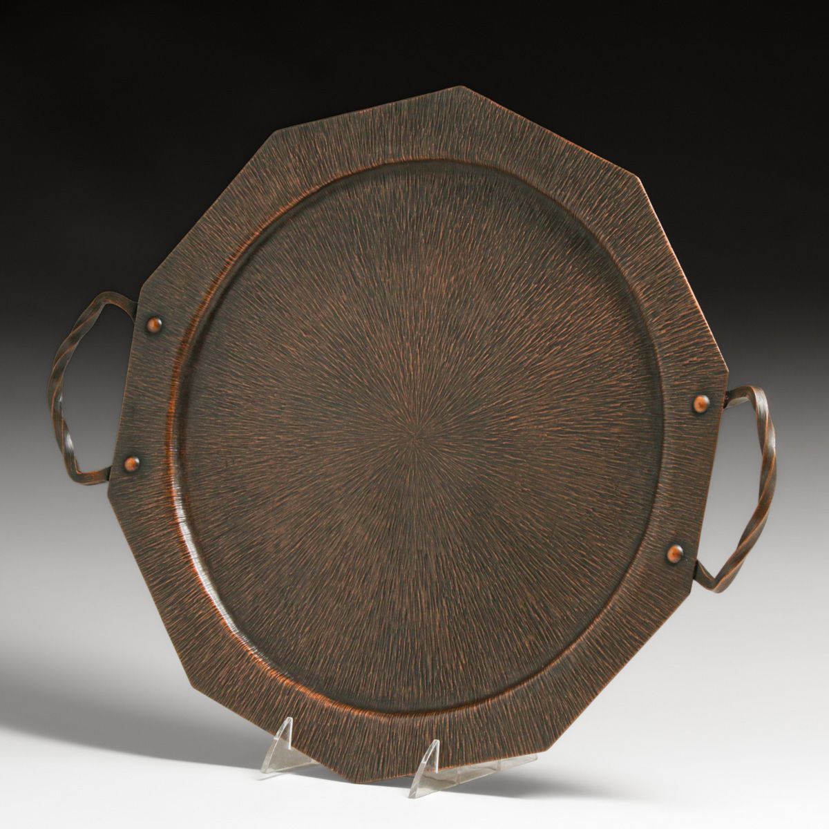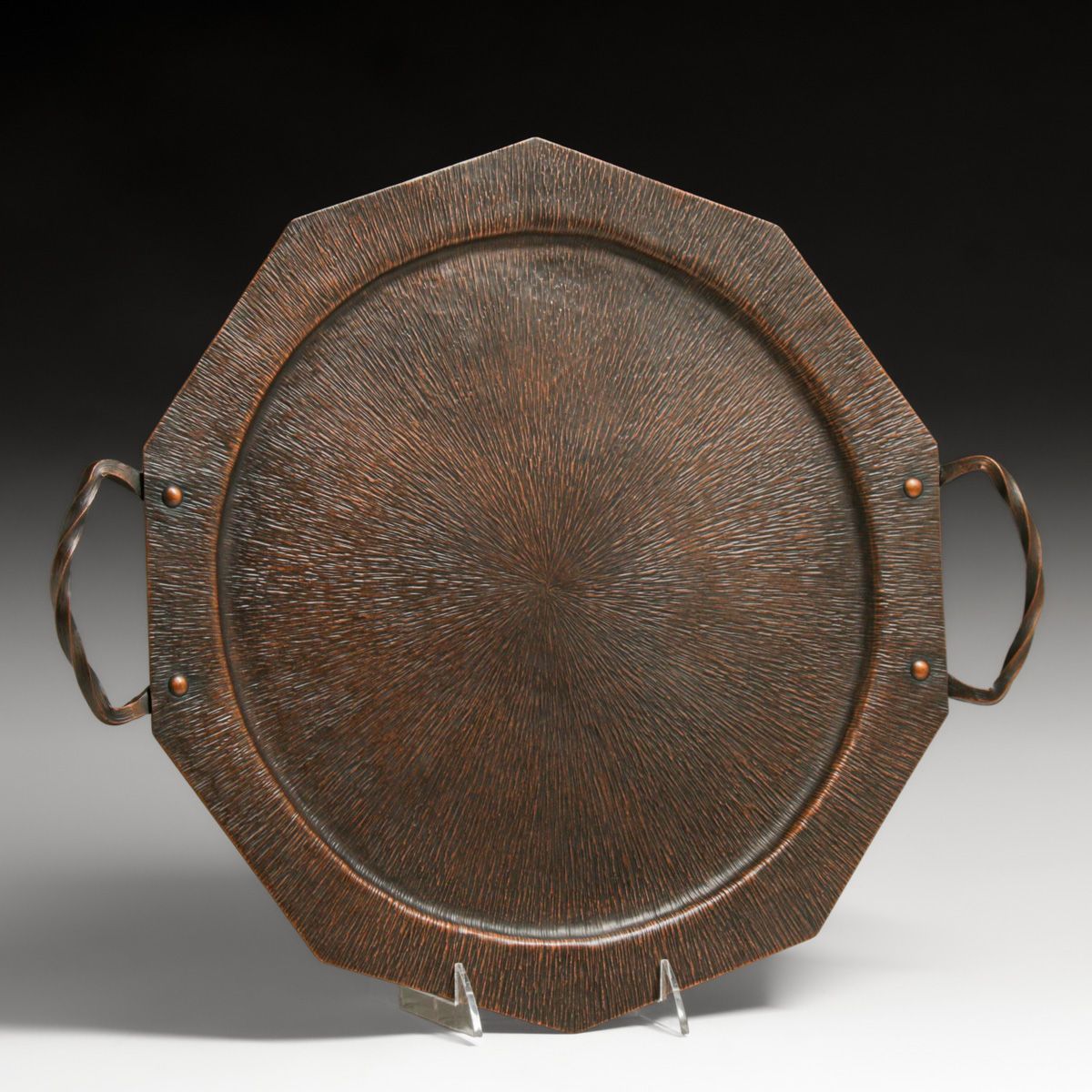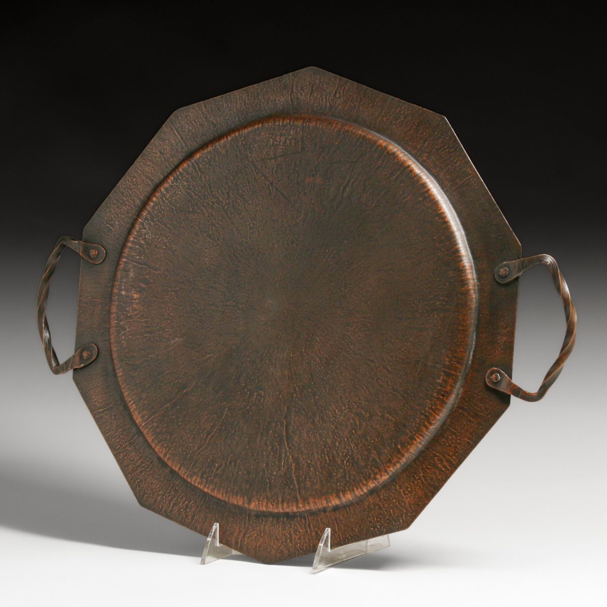 - Arts & Crafts Period Radial Hammered Copper Two-Handled Tray c1920s