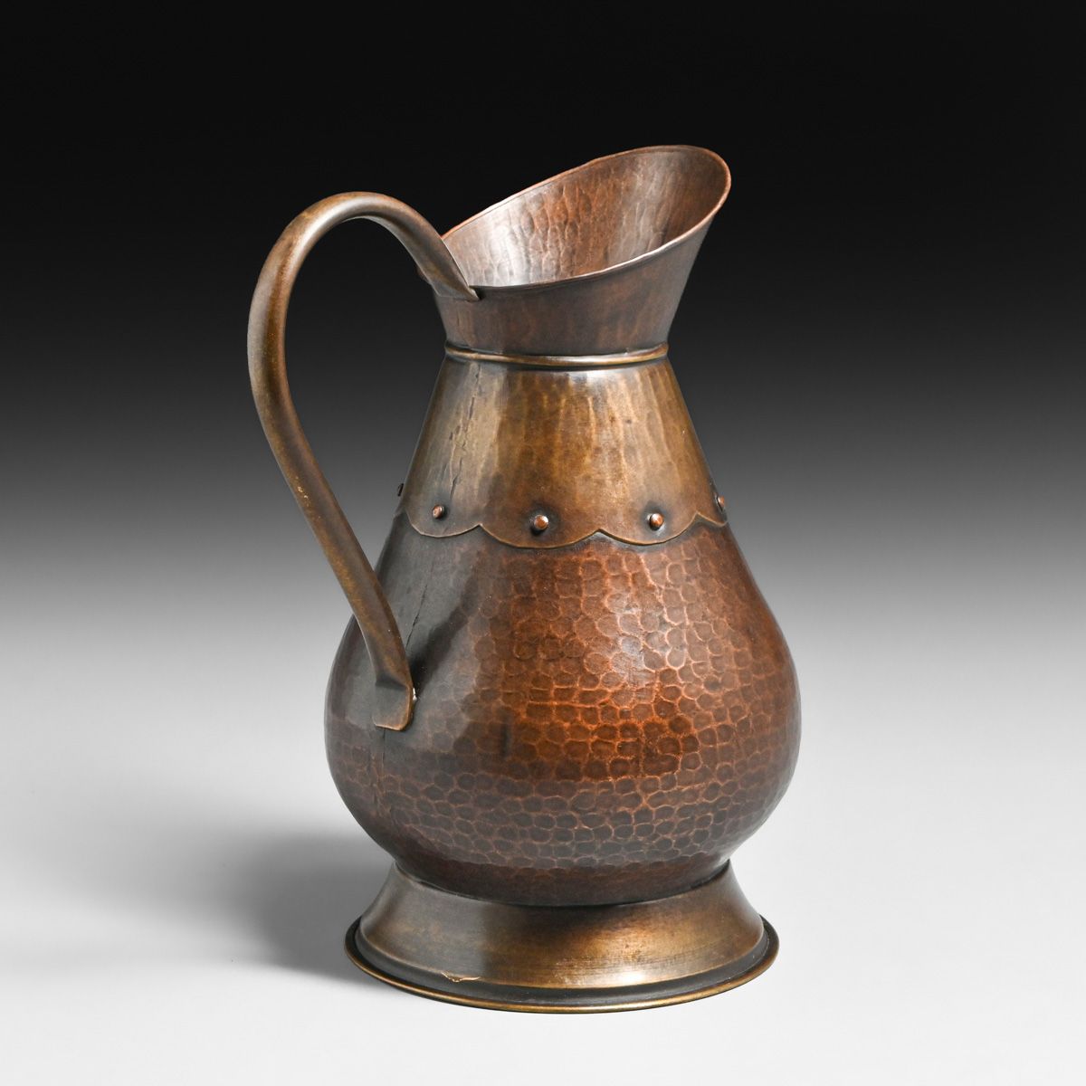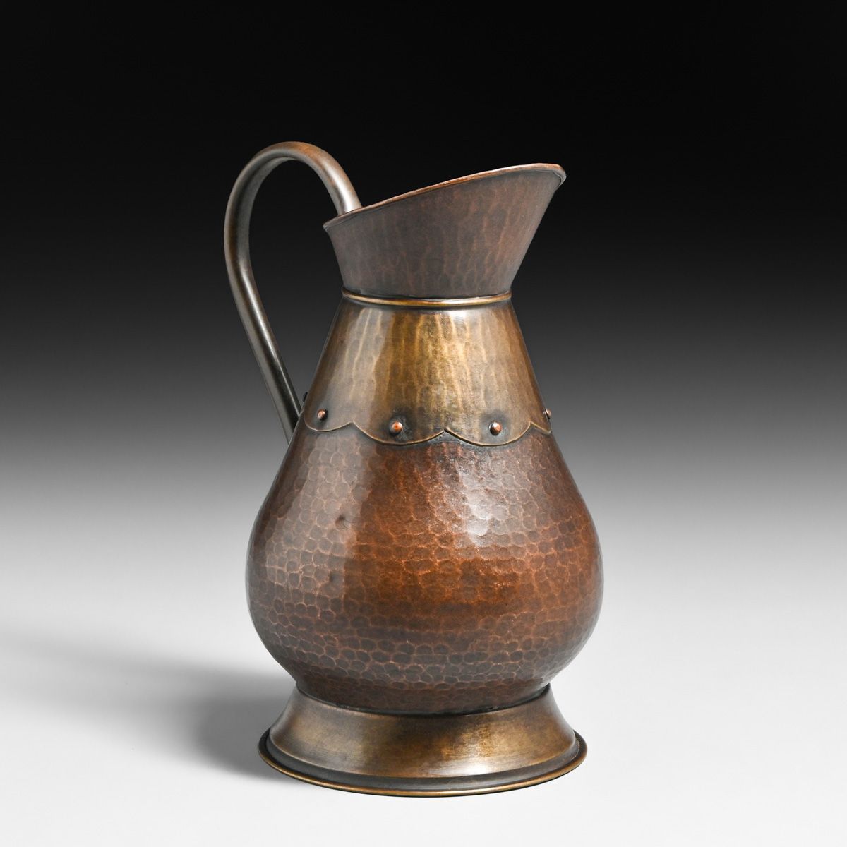- Belgian Arts & Crafts Hammered Copper & Brass Pitcher c1910