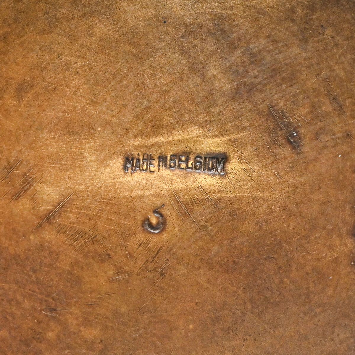Belgian Arts & Crafts Hammered Copper & Brass Pitcher c1910. Marked "Made in Belgium". Excellent new patina. 11"h x 9"w