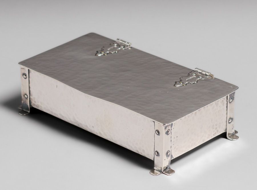 - August Tiesselinck Hammered Copper Silver-Plated Strap-Hinge Box 1921