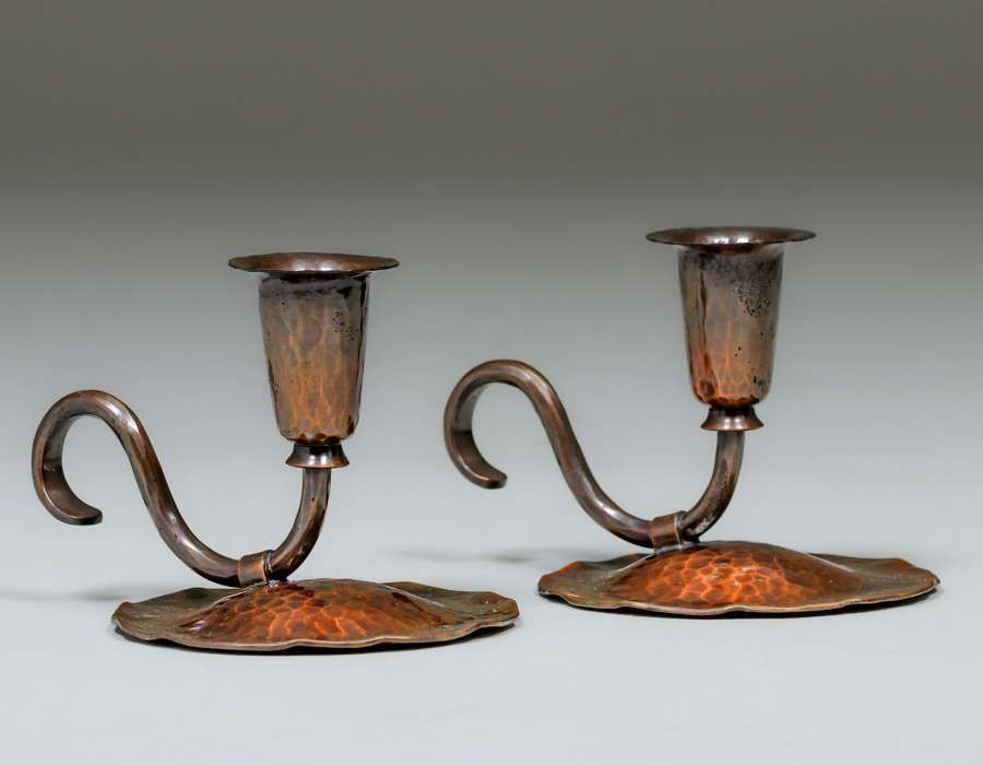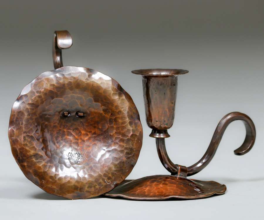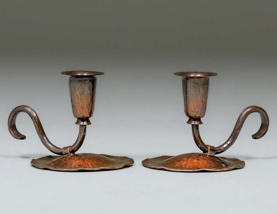 - Arthur Cole - Avon Coppersmith Hammered Copper Candlesticks c1930s