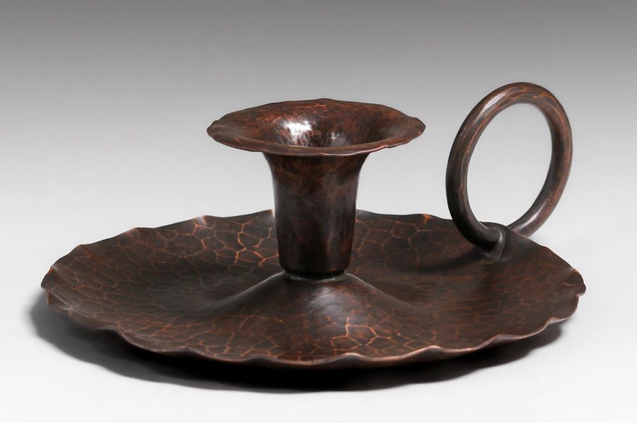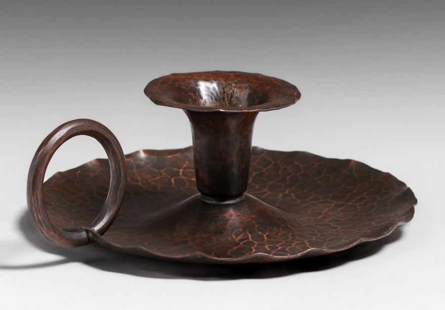 - Arthur Cole – Avon Coppersmith Hammered Copper One-Loop Handle Candlestick c1930s