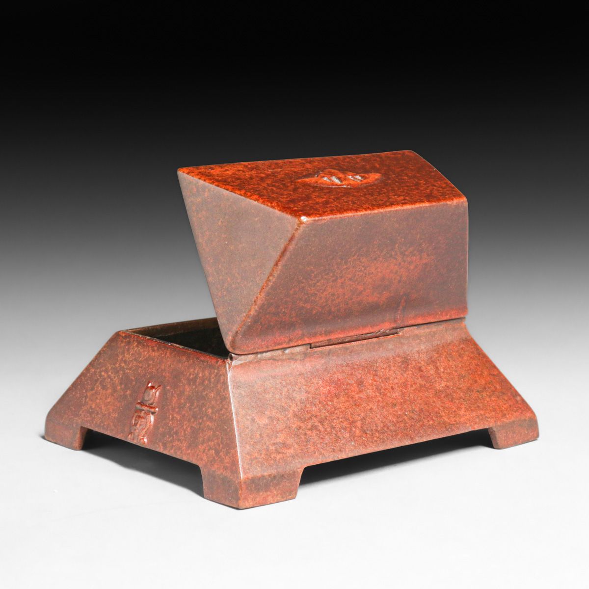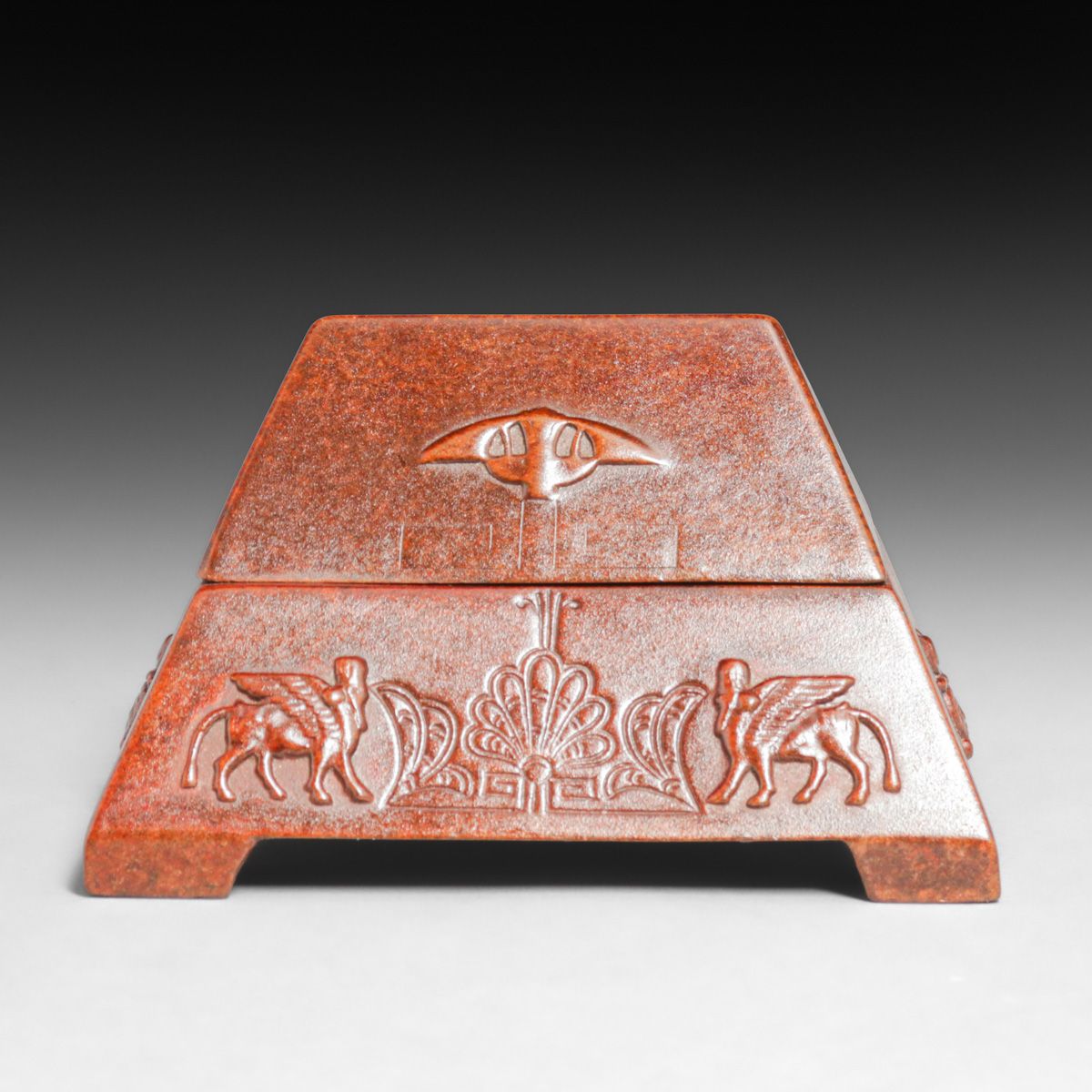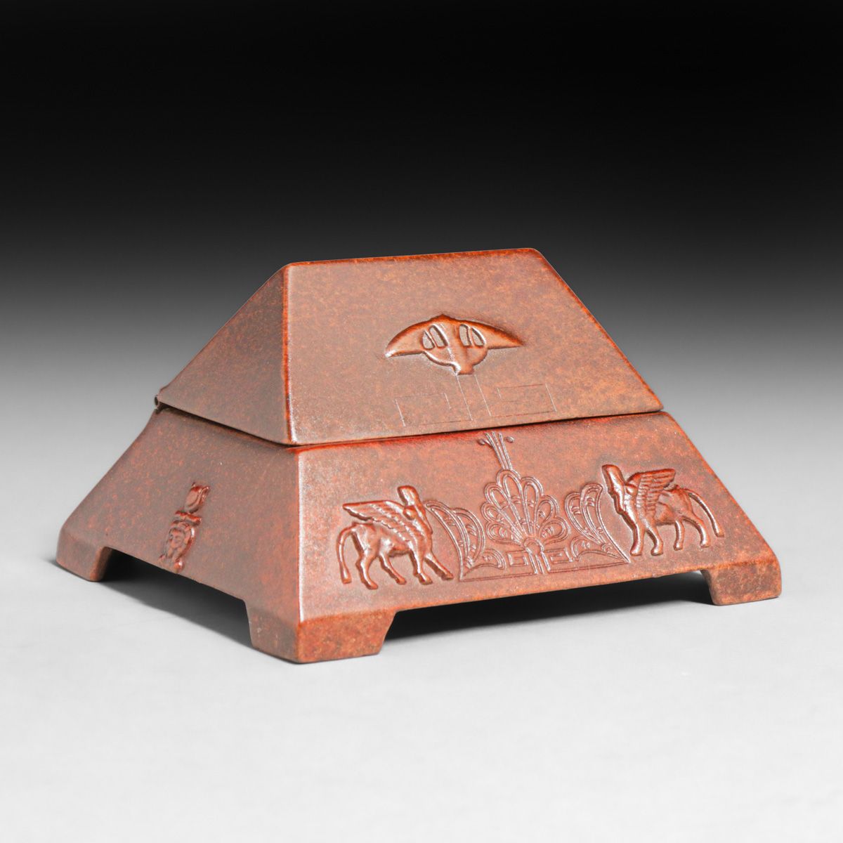 Benedict Studios Copper Egyptian Revival Desk Box c1920s. Signed. Excellent new patina. 5.5"w x 4 7/8"d x 3.25"h