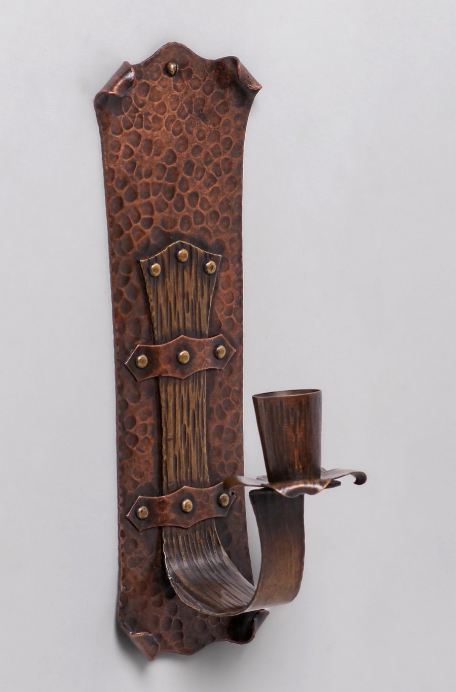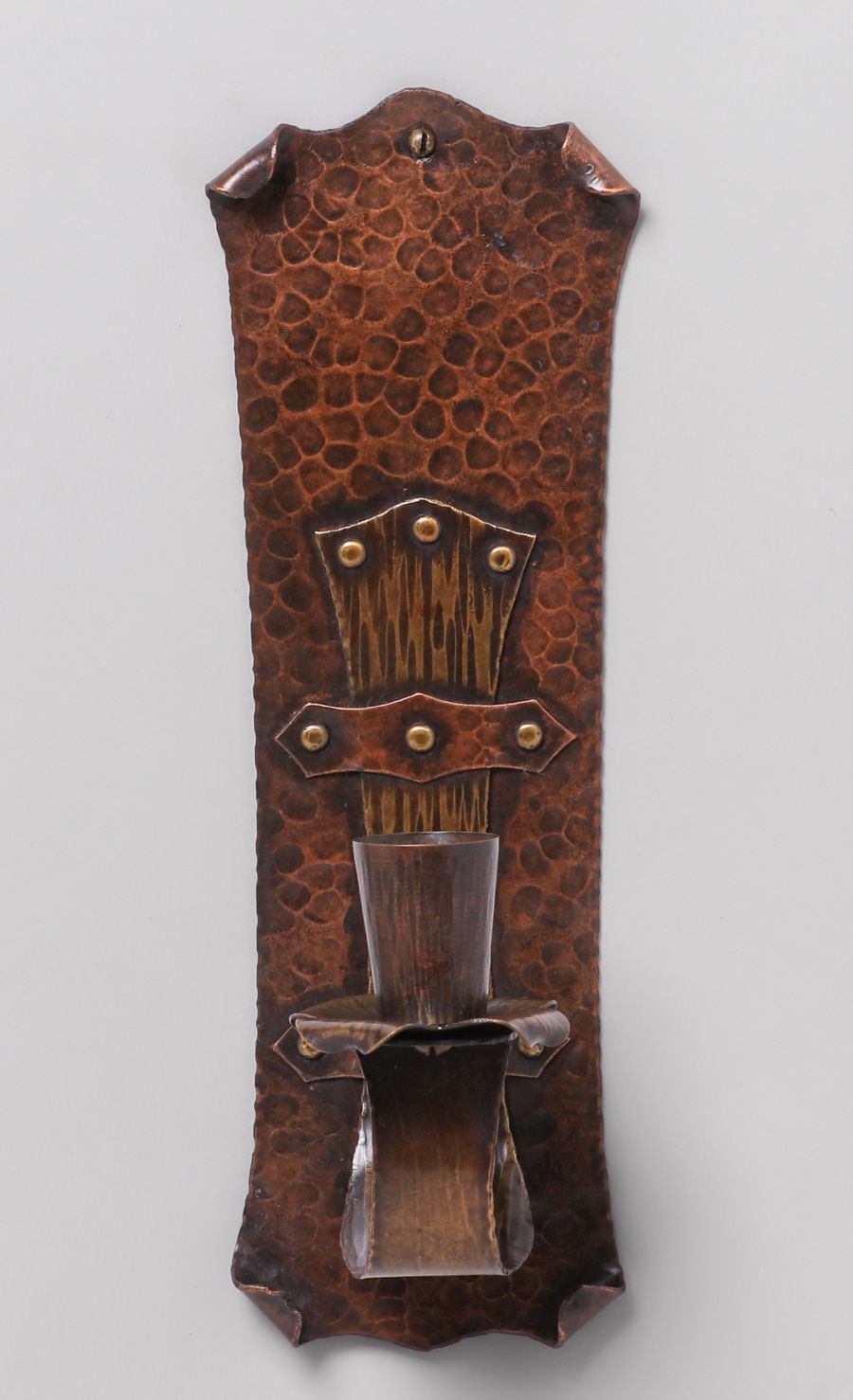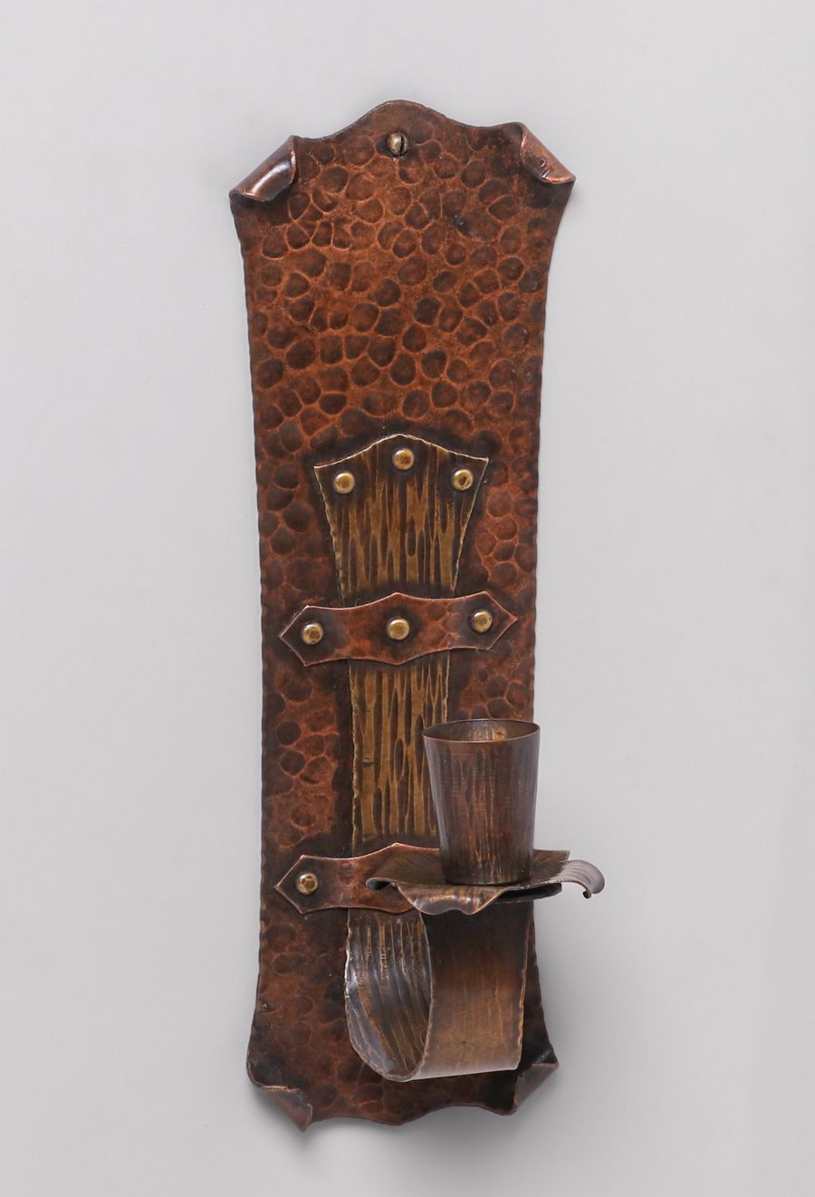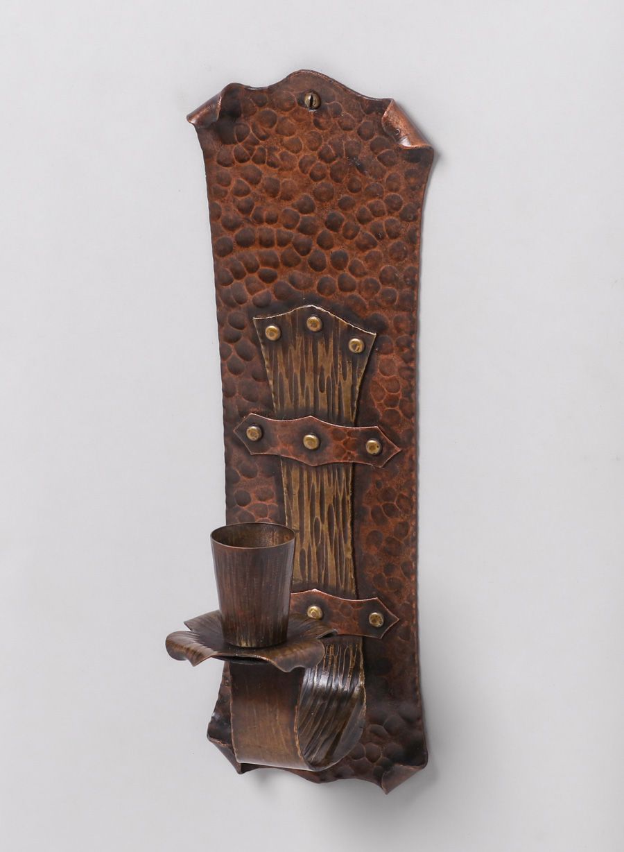 - Benedict Studios Hammered Copper & Brass Candle Sconce c1910