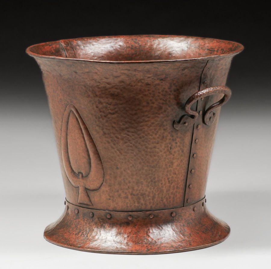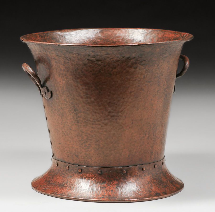 - Benedict Studios Hammered Copper Two-Handled Jardiniere c1910