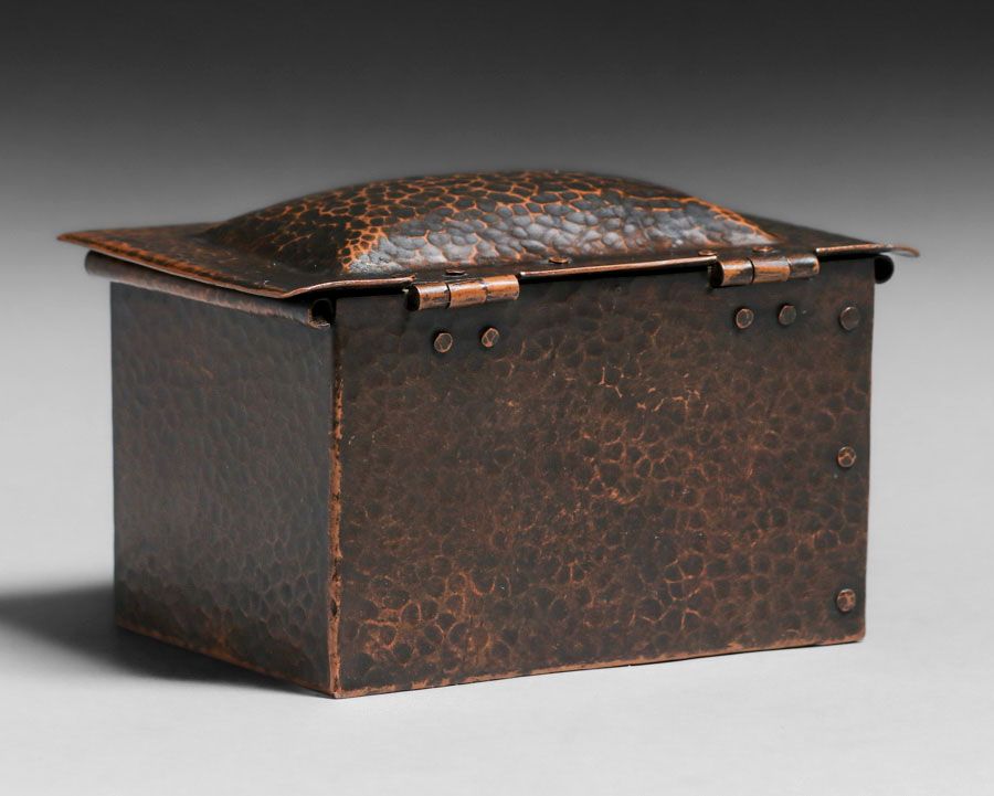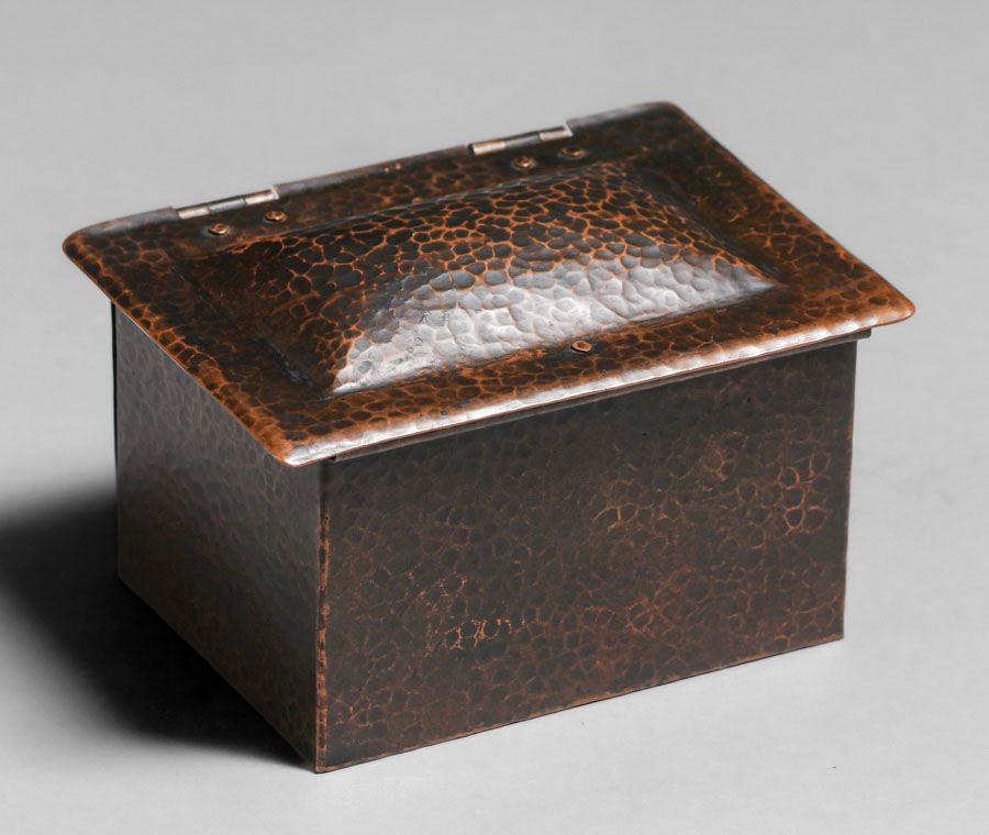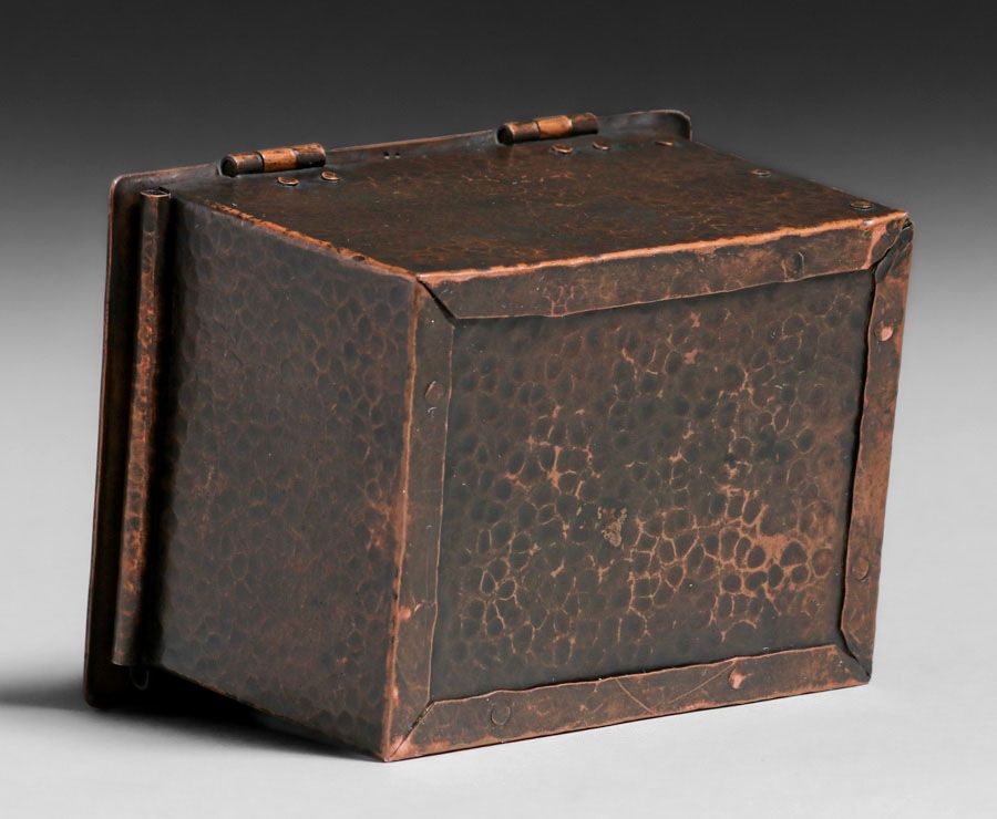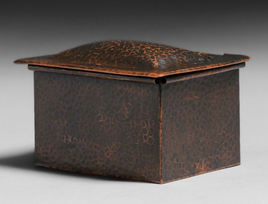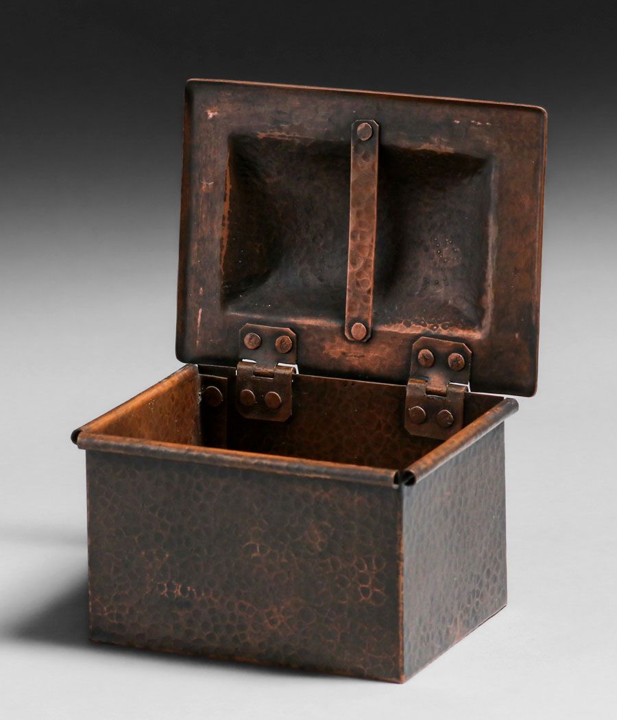 Early Benedict Studios Hammered Copper Box c1905. Unsigned. Excellent original patina. 5"h x 3.5"d x 3"h SOLD