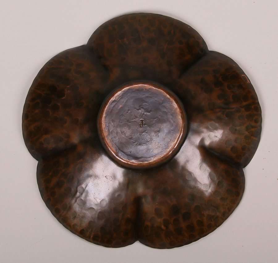 Byard Tully hammered copper "poppy" bowl. Tully worked and trained under Harry St John Dixon in San Francisco and in 1932 opened his own shop. This bowl dates from the early 1930s. Signed. Excellent original patina. 9.25"d SOLD
