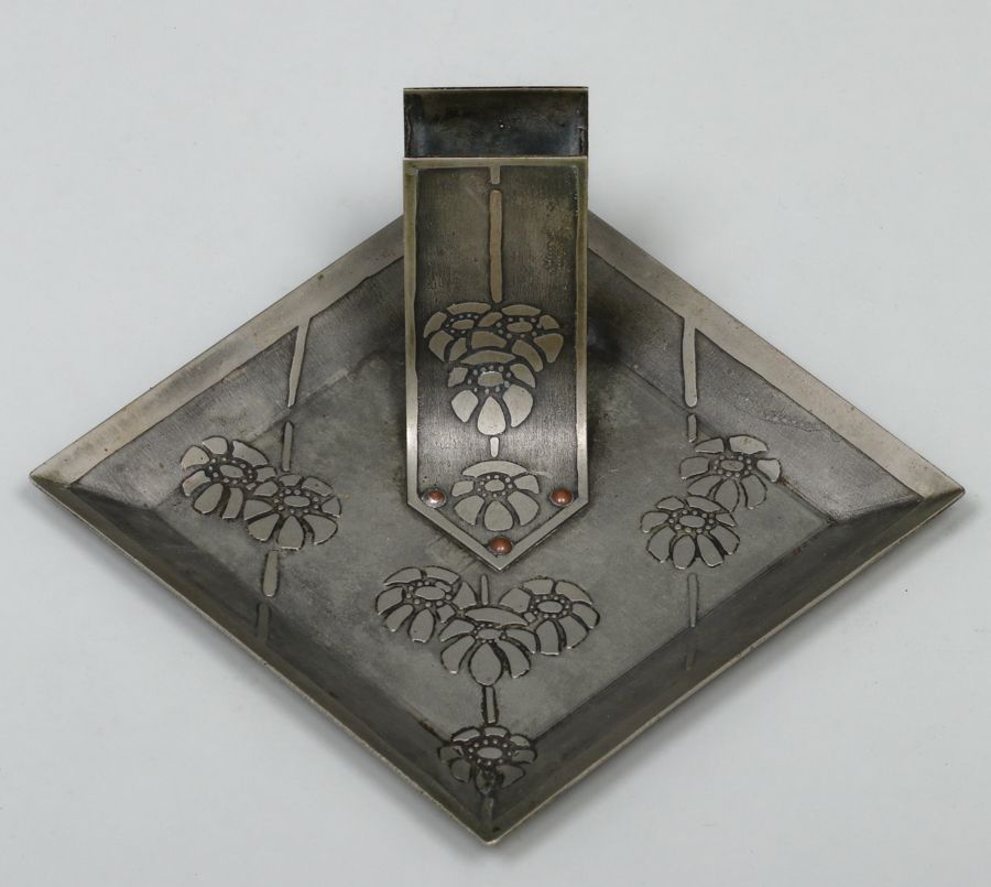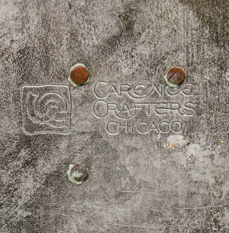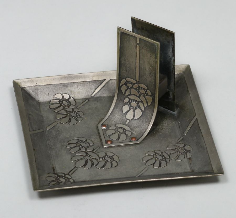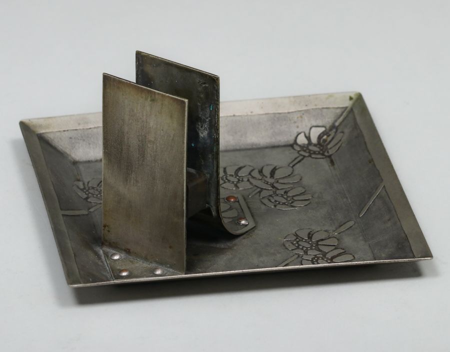 Carence Crafters Acid-Etched Smoker's Tray c1910. Signed. Excellent original patina. 5.75" x 6" x 3"h SOLD
