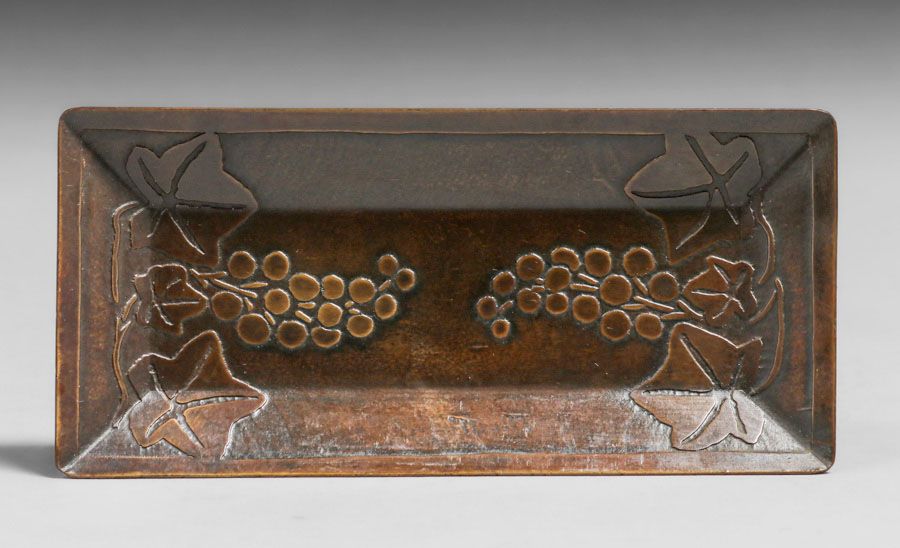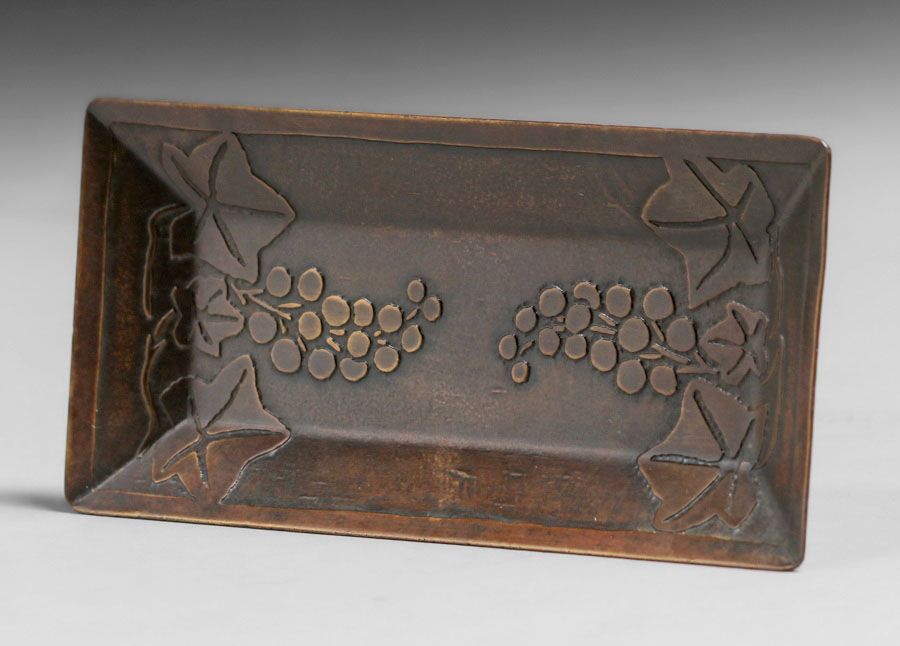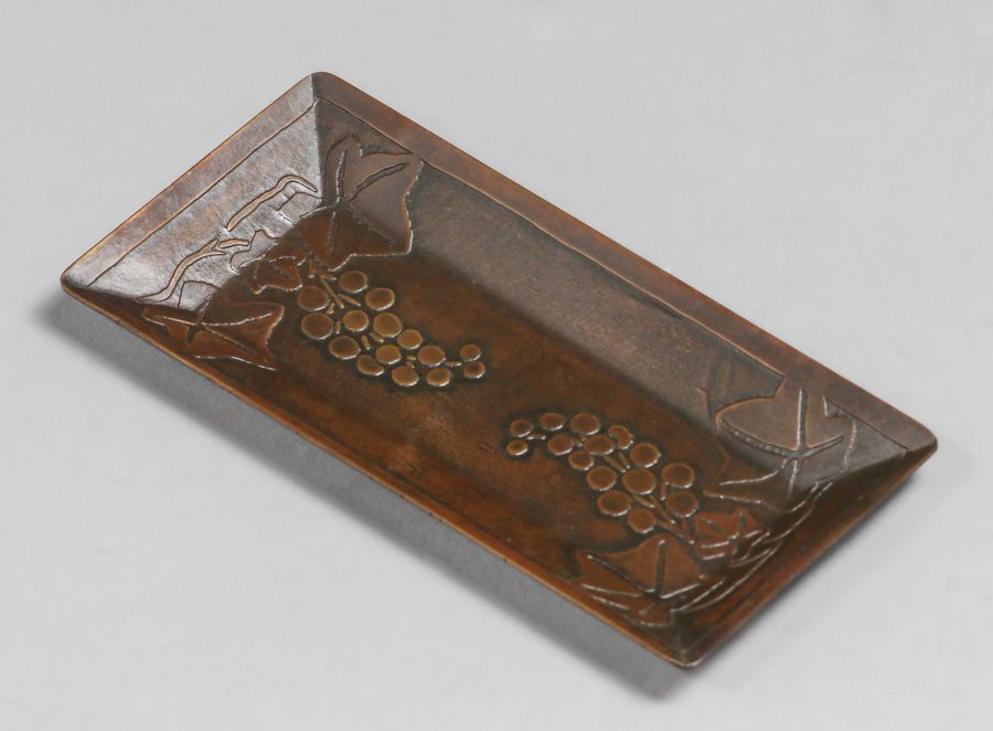Carence Crafters - Chicago Acid-Etched Grapevine Tray c1910. Signed. Excellent new patina. 5.75" x 2.75" SOLD