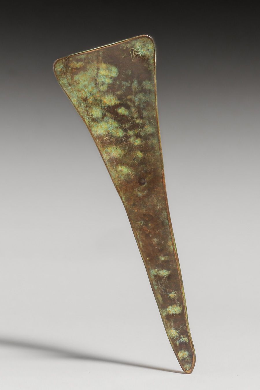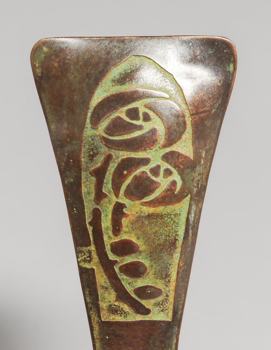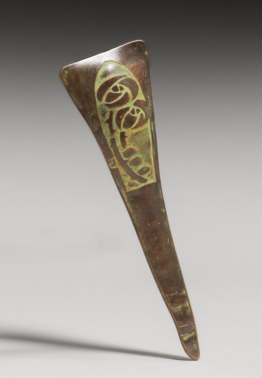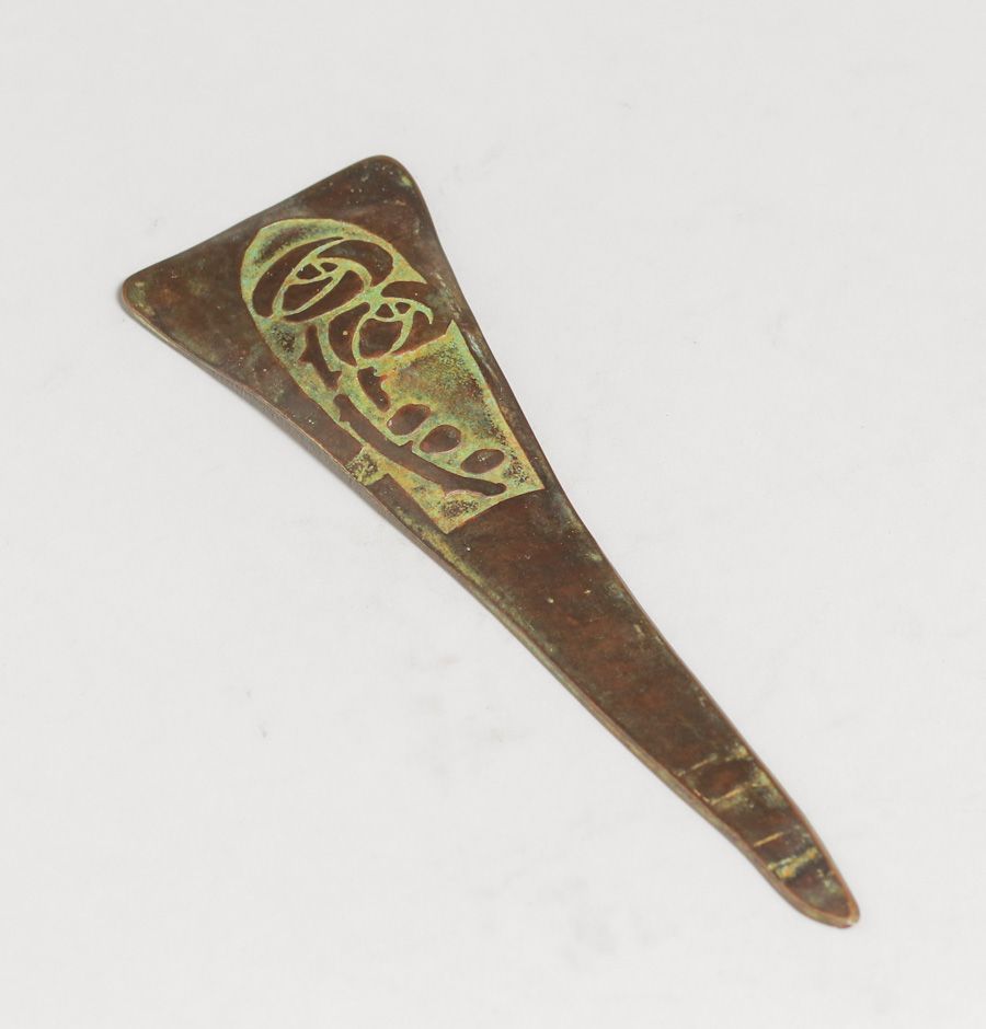 Carence Crafters - Chicago Acid-Etched Letter Opener c1910. Signed. Color addd to original patina. 4.75" x 1.5"w SOLD
