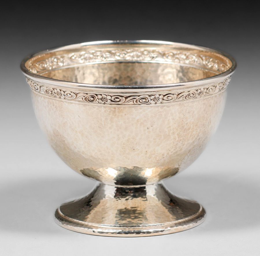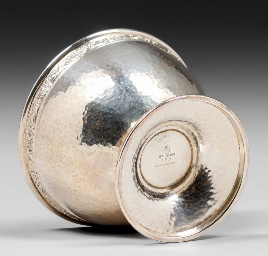 Carter Bros - Portland, Maine Hammered Sterling Silver Vase c1910. Signed. Excellent condition. 4.25"d x 3 1/8"h SOLD