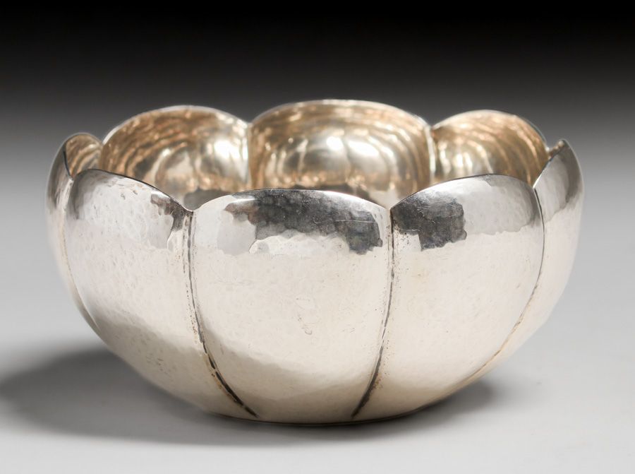 - Cellini Craft - Chicago Hammered Sterling Silver Eight-Sided Bowl c1920s
