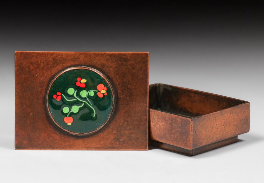 - Agatha van Erp Student Hammered Copper & Enamel Box c1950s