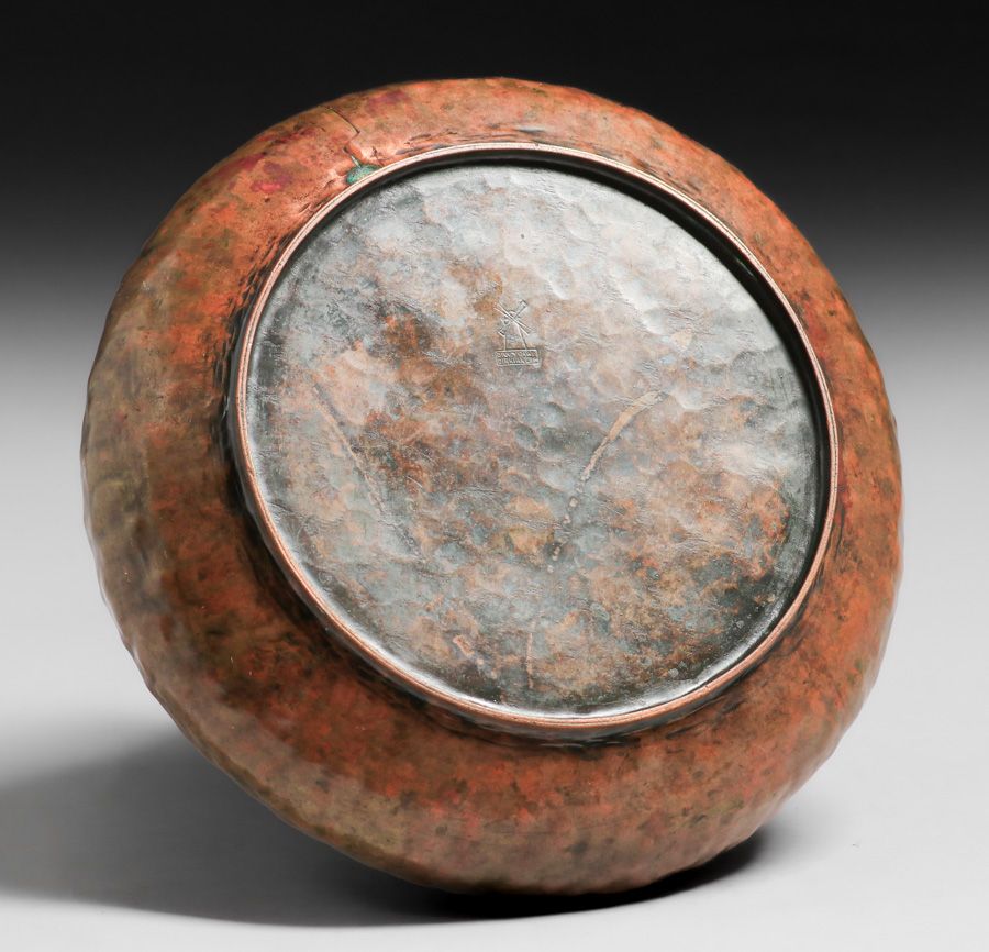 Dirk van Erp - D'Arcy Gaw Hammered Copper Warty Bowl c1910. Signed. Excellent original patina. 9.25"d x 2 7/8"h $12,000