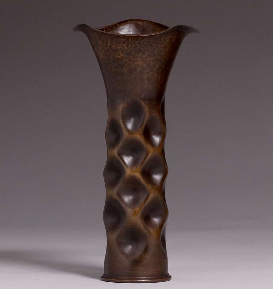 - Dirk van Erp Hammered Brass Dimpled Shell Casing Vase c1904-1908