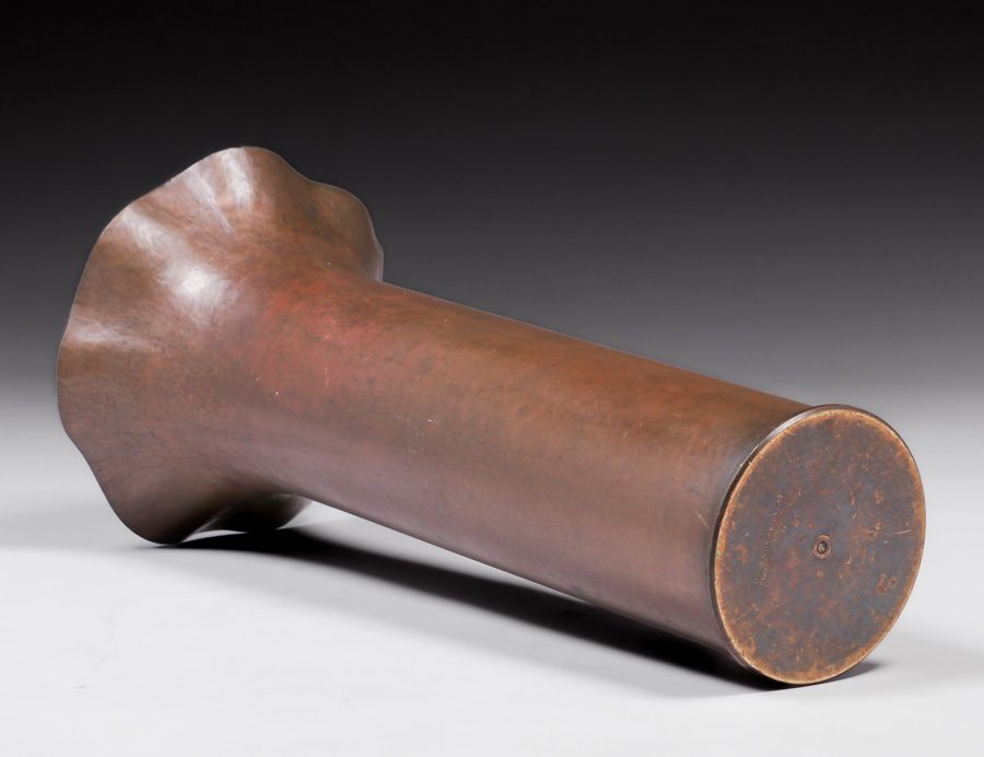 Dirk van Erp Hammered Brass Shell casing Umbrella Stand Vase c1902-1908. Signed with the Winchester Repeating Arms Co marking. Excellent original patina. 27"h x 12"d SOLD