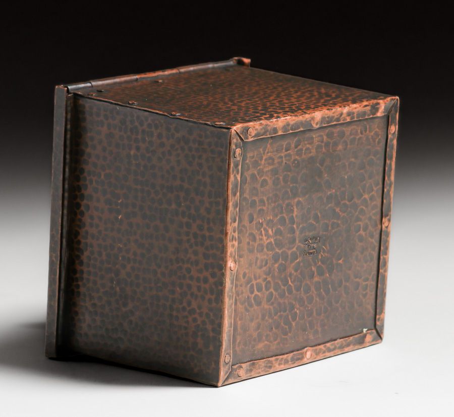 Dirk van Erp Hammered Copper & Brass Fruit Bowl c1930s. Signed with open-box, San Francisco mark. Excellent new patina. 17.25"d x 3.25"h SOLD