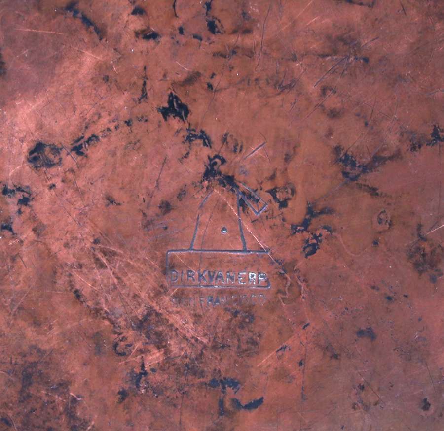 Dirk van Erp hammered copper cigar ashtray c1920s. Sign with open box, San Francisco mark. Excellent original patina. 7.75"d x 4.5"h SOLD