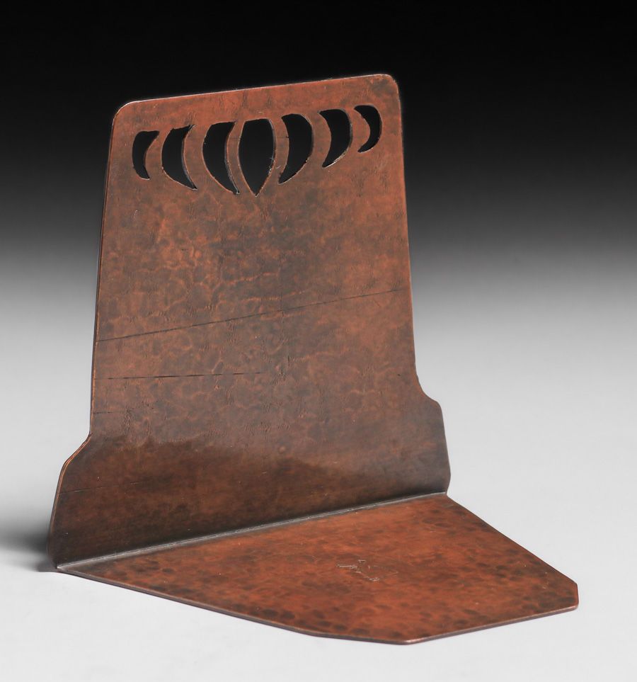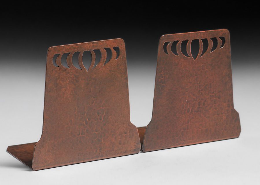 - Dirk van Erp Hammered Copper Cutout Bookends c1913-1914
