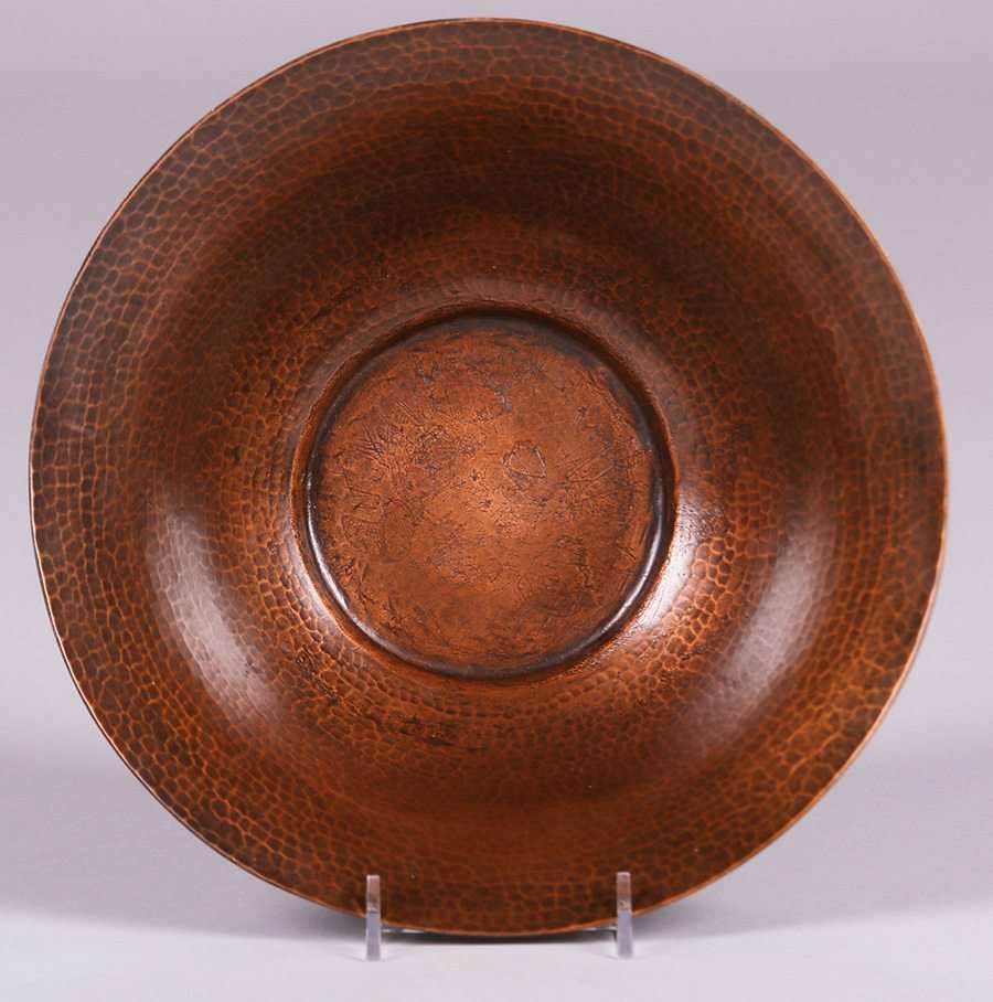 Dirk van Erp hammered copper flared bowl. Signed with open-box, San Francisco mark. Excellent new patina. 9.75"d x 3.75"h SOLD