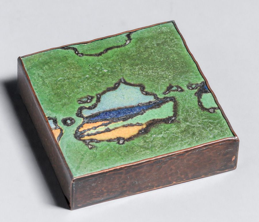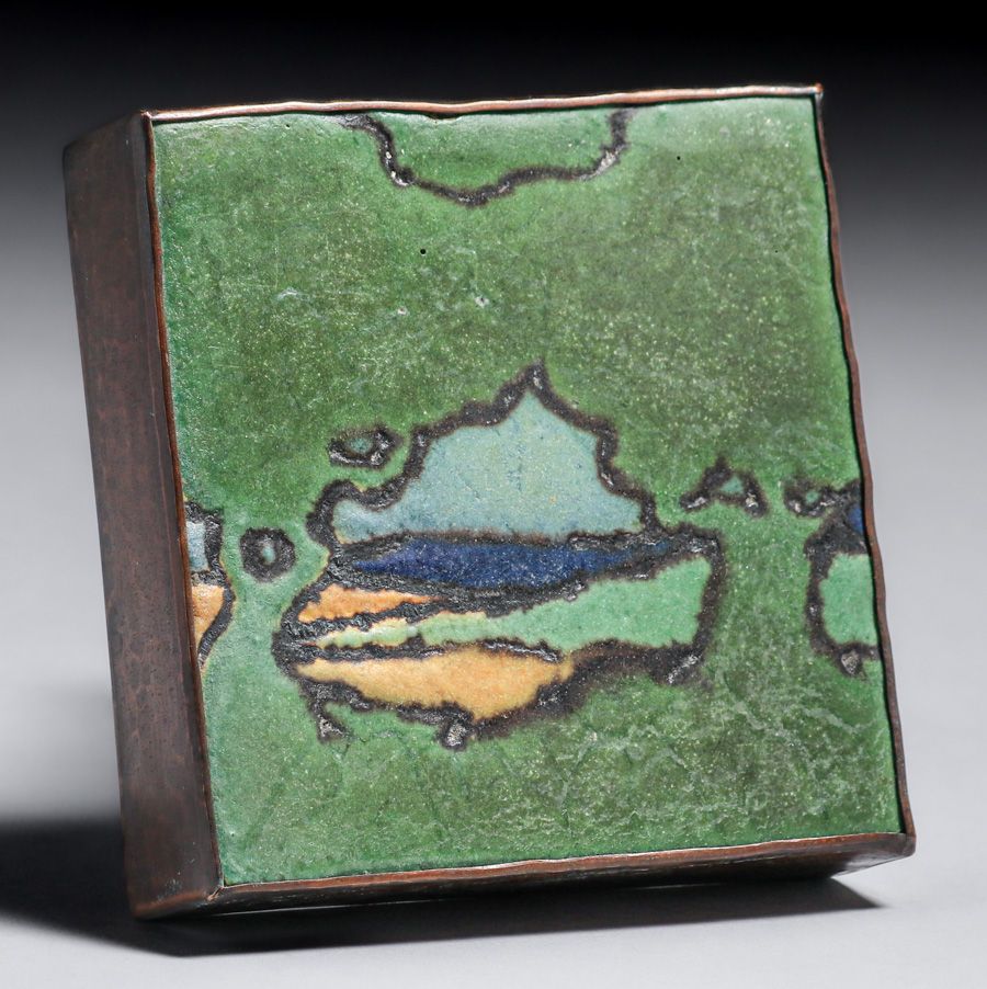 - Dirk van Erp Hammered Copper Framed Grueby Tile c1910