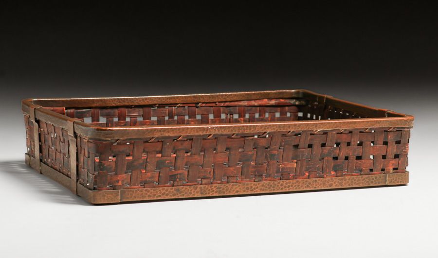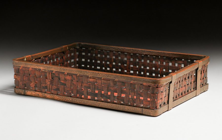 - Dirk van Erp Hammered Copper & Japanese Hand-Woven Bamboo Basket c1917-1920