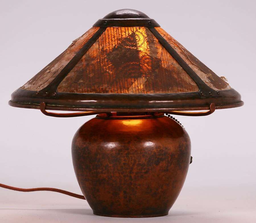 - Dirk van Erp Hammered Copper & Mica Boudoir Lamp