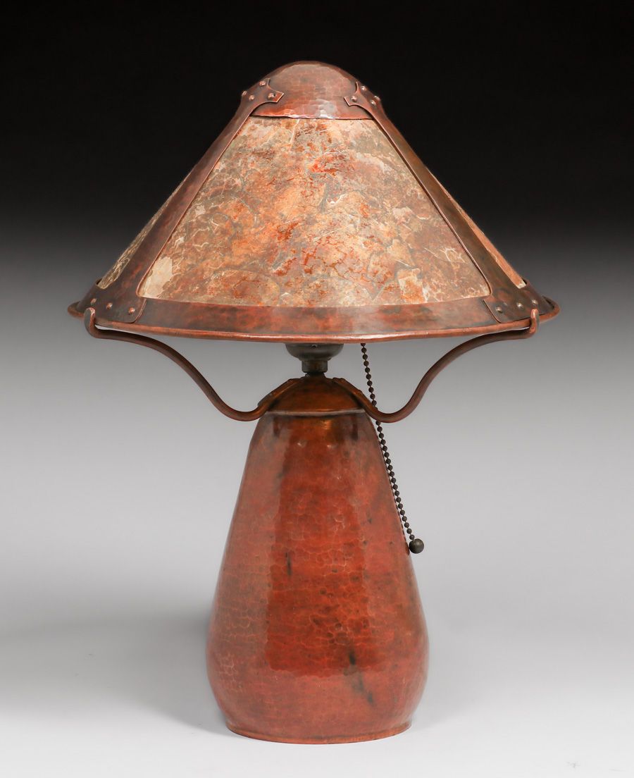 - Dirk van Erp Hammered Copper & Mica Boudoir Lamp c1911-1912