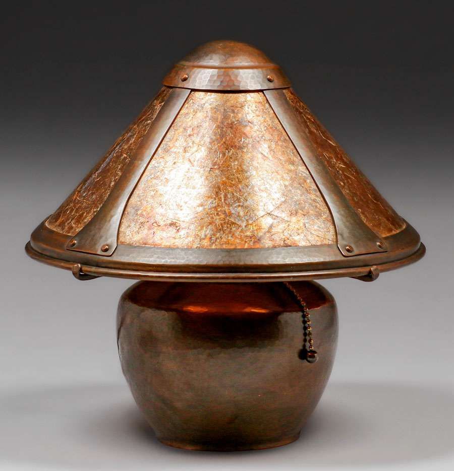 - Dirk van Erp Hammered Copper & Mica Boudoir Lamp c1915-1925
