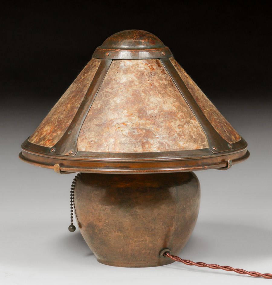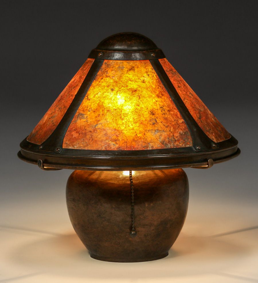 - Dirk van Erp Hammered Copper & Mica Boudoir Lamp c1920s