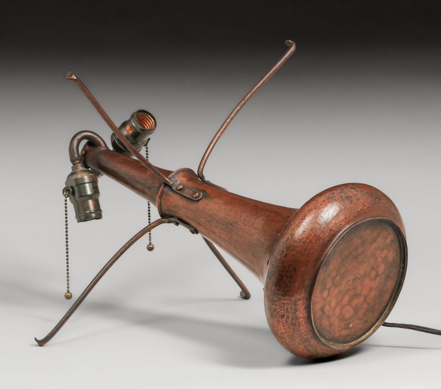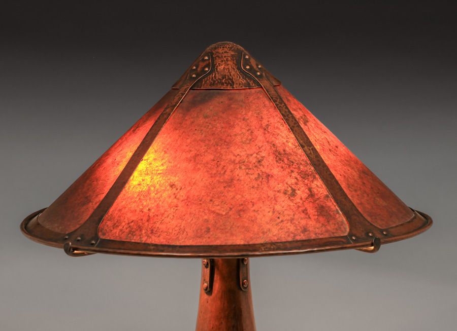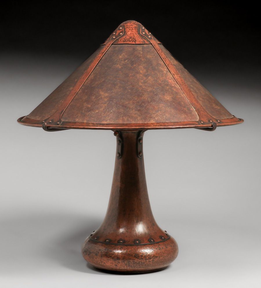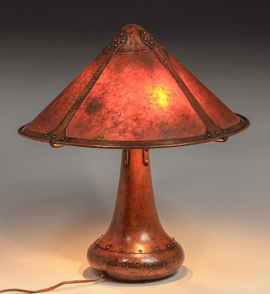 - Dirk van Erp Hammered Copper & Mica Rivetbase Lamp c1913-1914