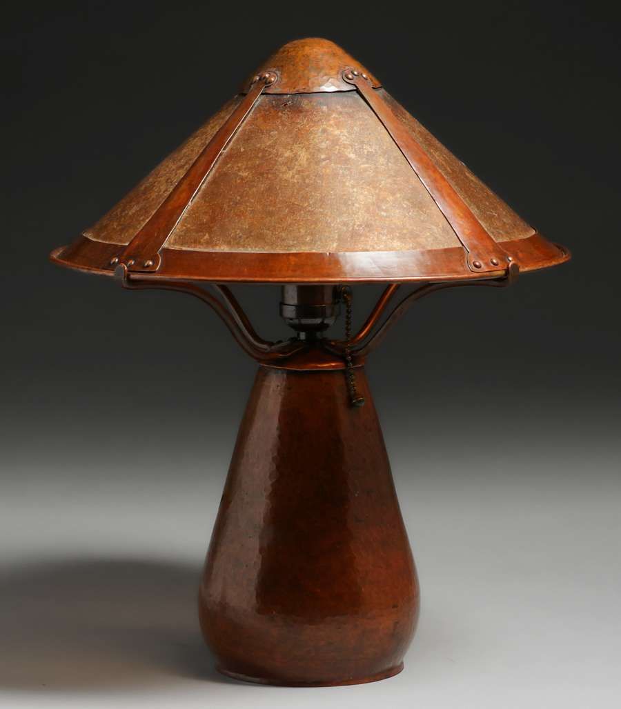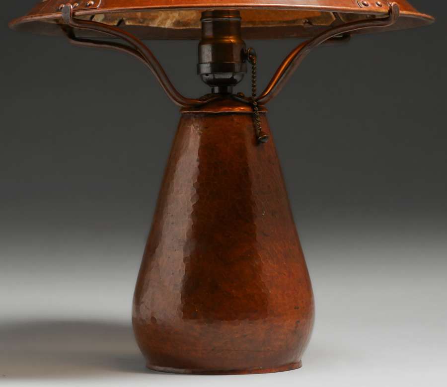 - Dirk van Erp Hammered Copper & Mica Single Socket Lamp c1911-1912