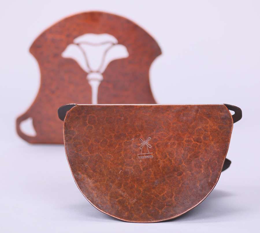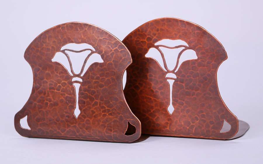 - Dirk van Erp Hammered Copper Poppy Bookends